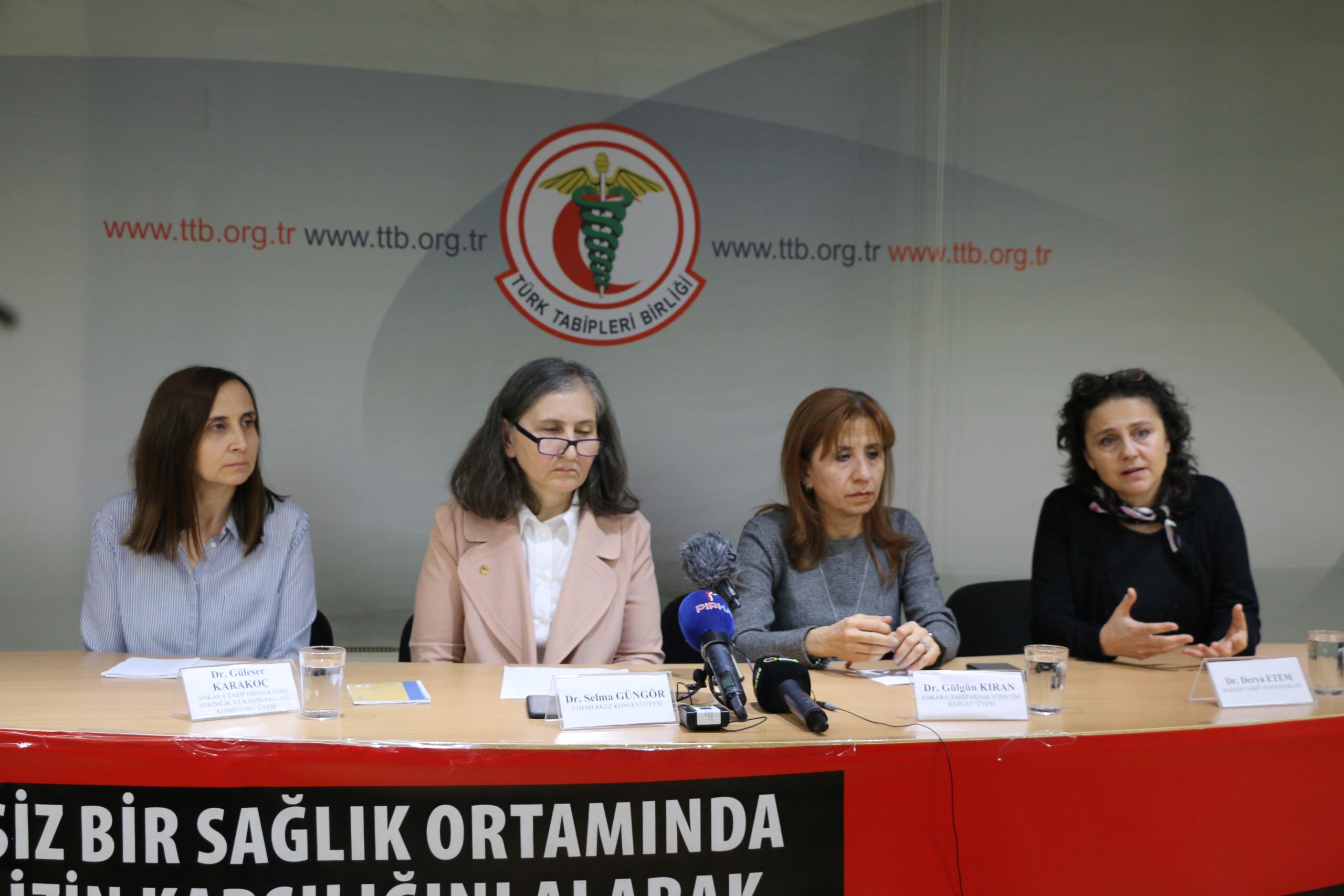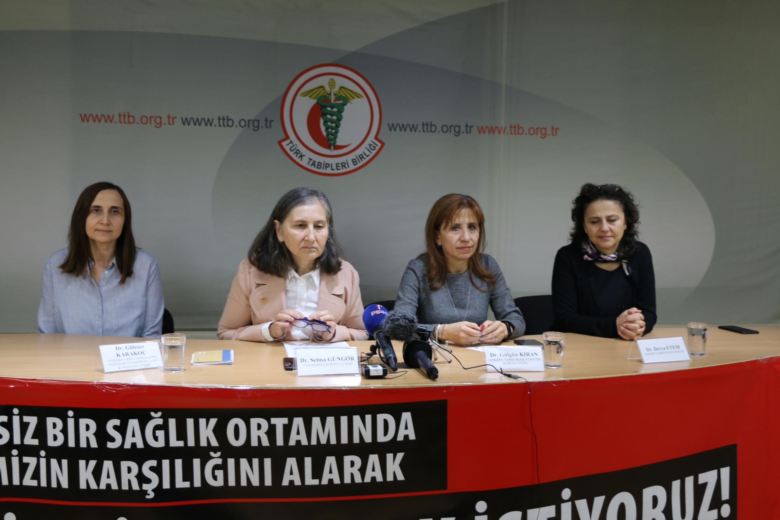 8 Mart öncesi Türk Tabipleri Birliği Genel Merkezi’nde “Kadın Hekimlik ve Kadın Sağlığı Kolu” basın toplantısı yapıldı. Basın metnini TTB Merkez Konsey üyesi Dr. Selma Güngör yaptı.