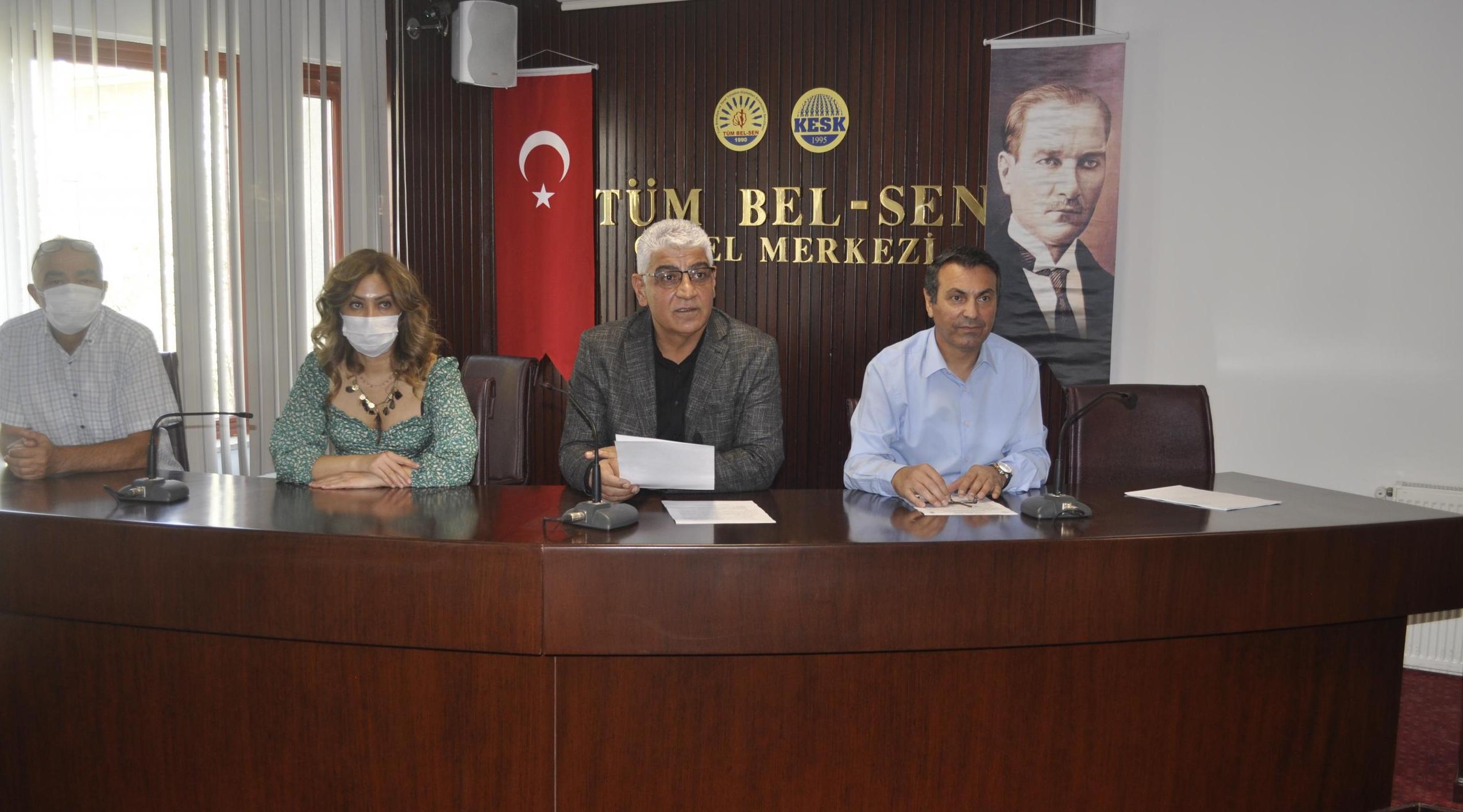 Tüm Belediye ve Yerel Yönetim Hizmetleri Emekçileri Sendikası (Tüm Bel-Sen) Merkez Yürütme Kurulu (MYK), başta kayyım atanan belediyeler olmak üzere birçok kurumda yaşanılan disiplin cezaları ve sürgünlere ilişkin Genel Merkez binasında basın toplantısı yaptı. Toplantıya Tüm Bel-Sen Genel Başkanı Erdal Bozkurt, Genel Sekreter Yılmaz Yıldırımcı, Mali Sekreter Satı Buruncu ve Genel Örgütlenme Sekreteri Mumtaz Başar katıldı.