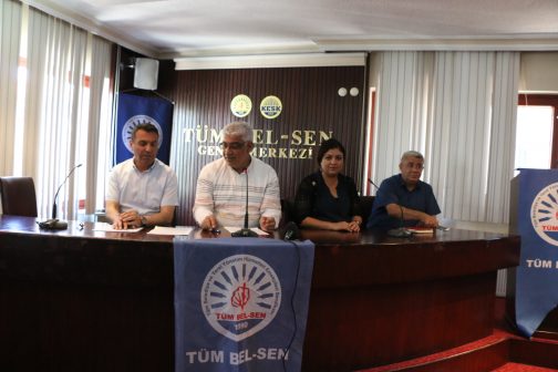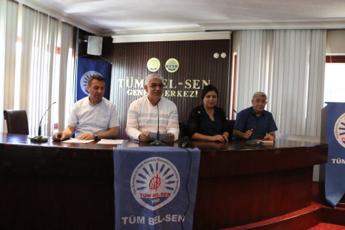 Tüm Bel-Sen Genel Merkez binasında yapılan açıklamayı MYK adına Genel Başkan Erdal Bozkurt okudu.