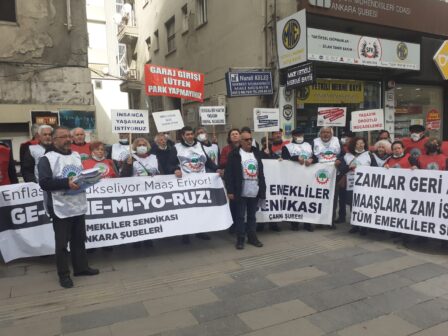 Tüm Emekliler Sendikası binası önünde yapılan açıklamayı Merkez Yürütme Kurulu adına Zeynel Abidin Ergen okudu. “Emekliye yapılan maaş artışı, elektrik ve doğalgaz zamlarına dahi yetmiyor” denilen açıklamanın devamında şu ifadelere yer verildi:
