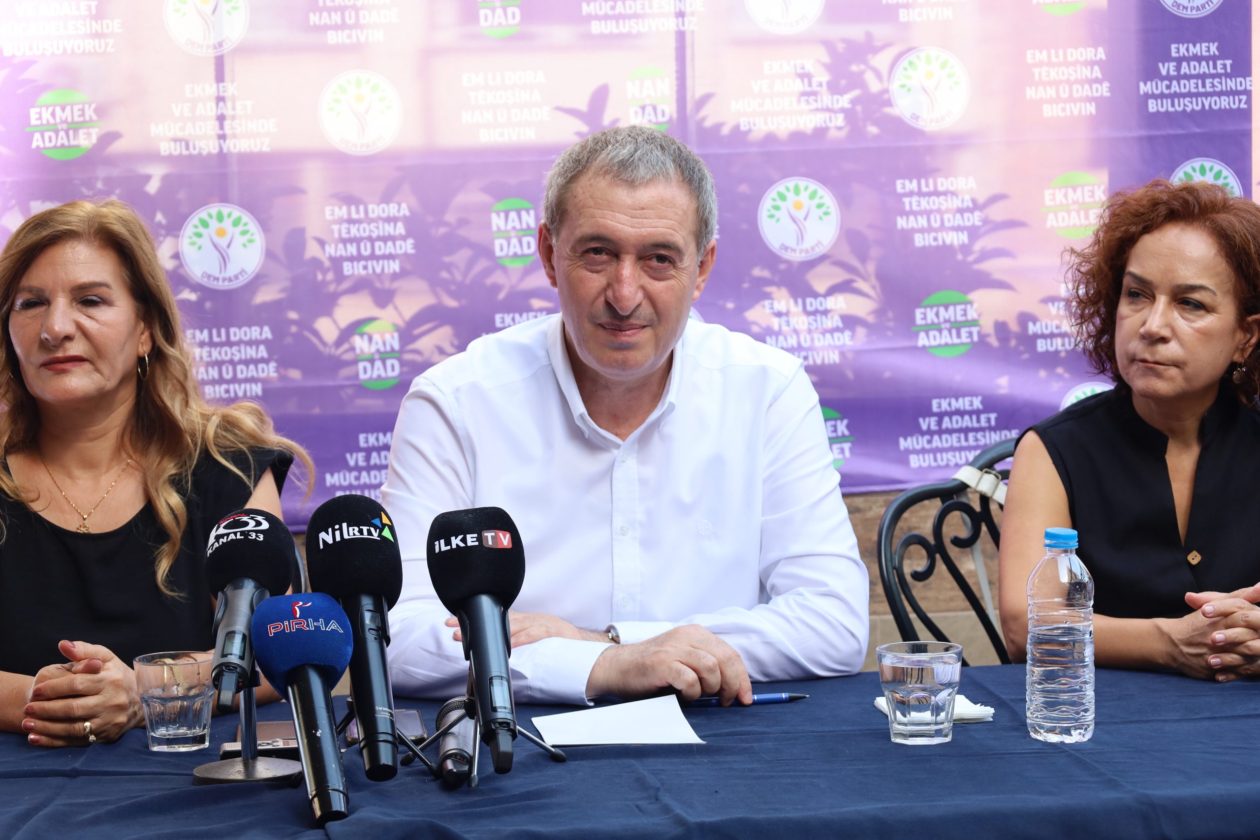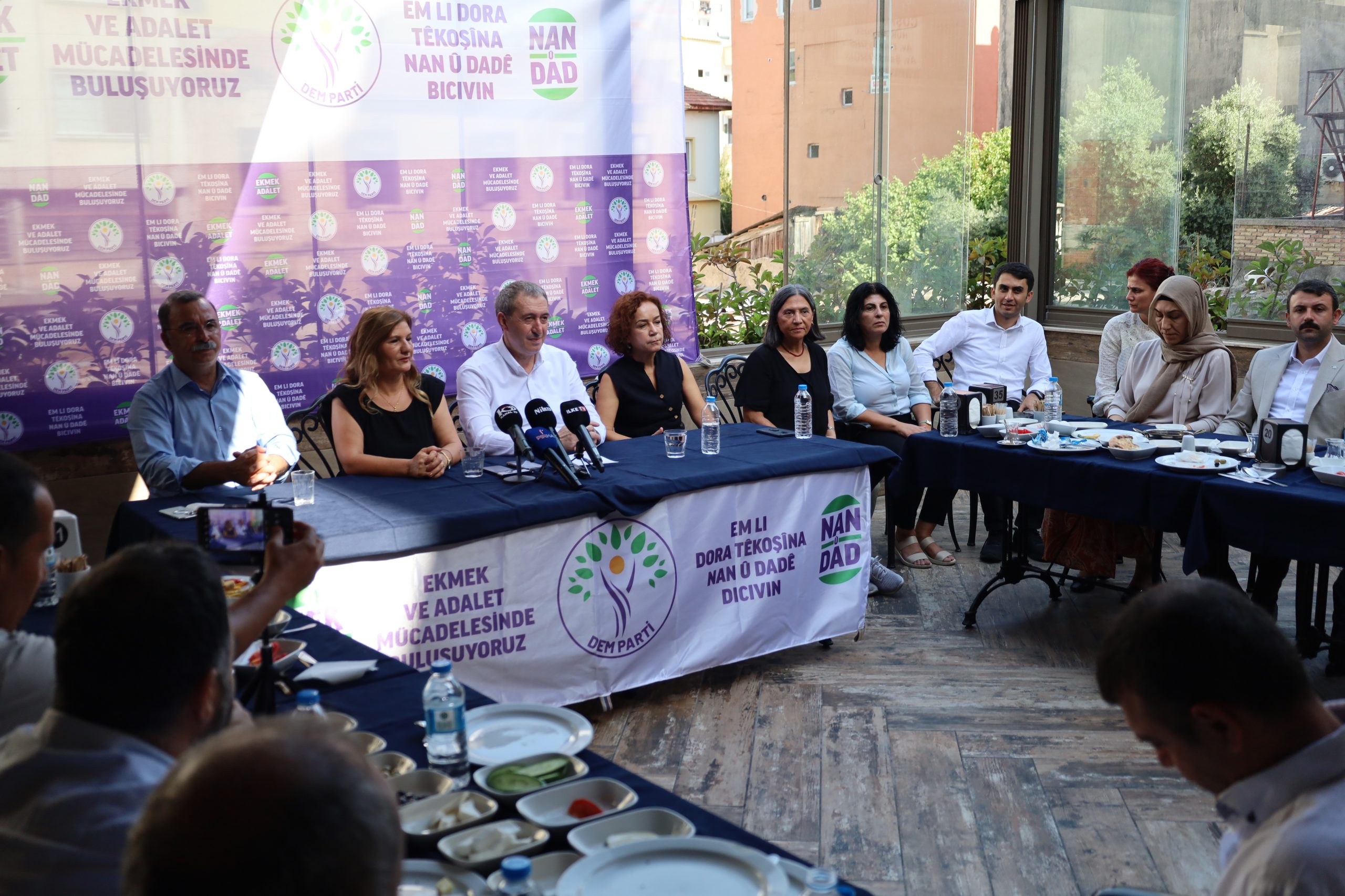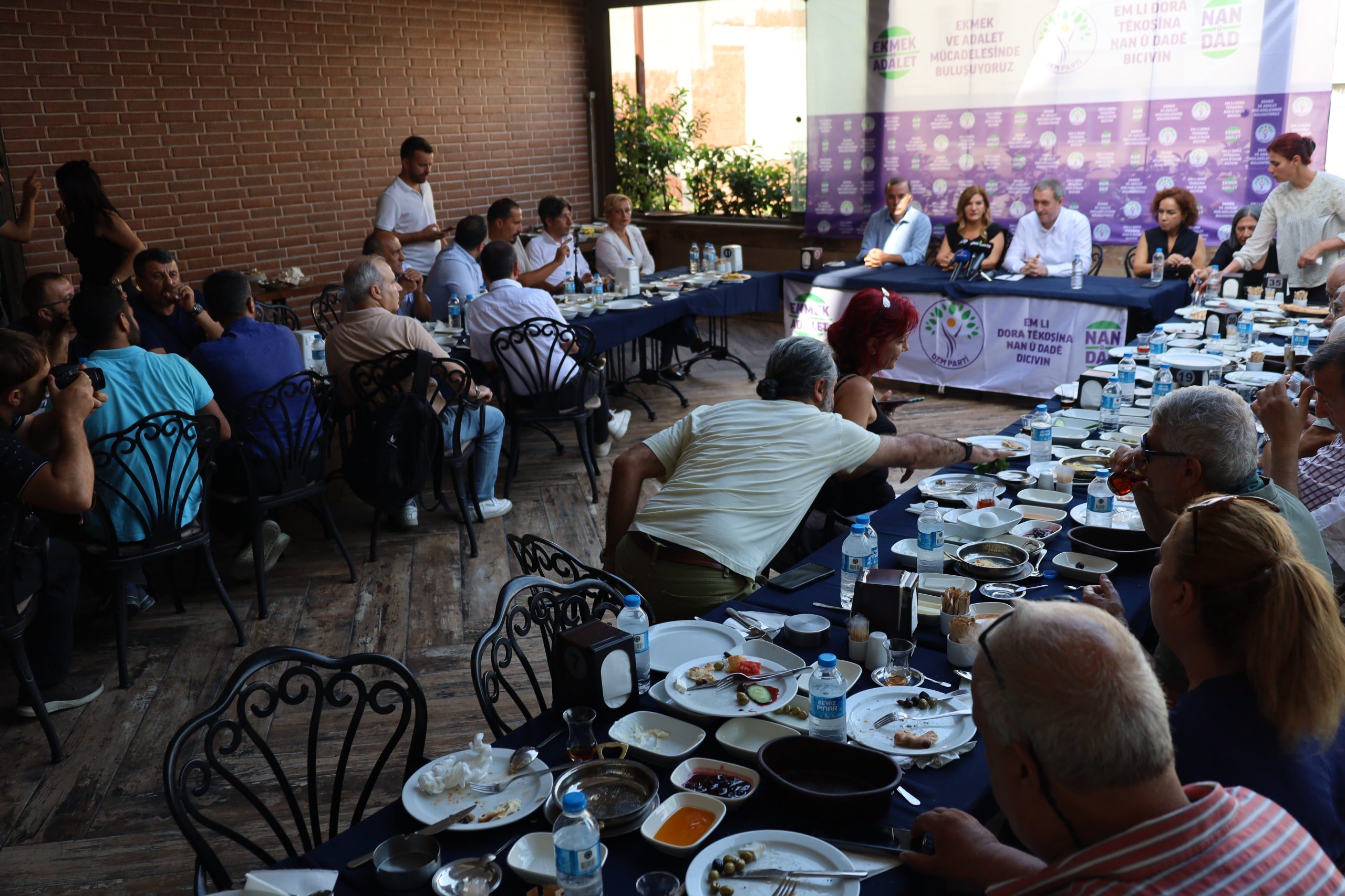 Halkların Eşitlik ve Demokrasi Partisi (DEM Parti) Eş Genel Başkanı Tuncer Bakırhan, “Ekmek ve Adalet” kampanyası kapsamında Mersin’de bir restoranta yerel basın mensuplarıyla bir araya geldi. Buluşmaya Bakırhan ve basın emekçilerinin yanı sıra DEM Parti Milletvekilleri Perihan Koca, Ali Bozan, İbrahim Akın ile Akdeniz Belediyesi Eş Başkanları Nuriye Aslan ve Hoşyar Sarıyıldız katıldı. Kürtçe ve Türkçe “Ekmek ve Adalet mücadelesinde buluşuyoruz” yazılı pankartının açıldığı buluşmada, Bakırhan yerel basının karşılaştığı sorunlara dikkat çekerek, sorularını yanıtladı.