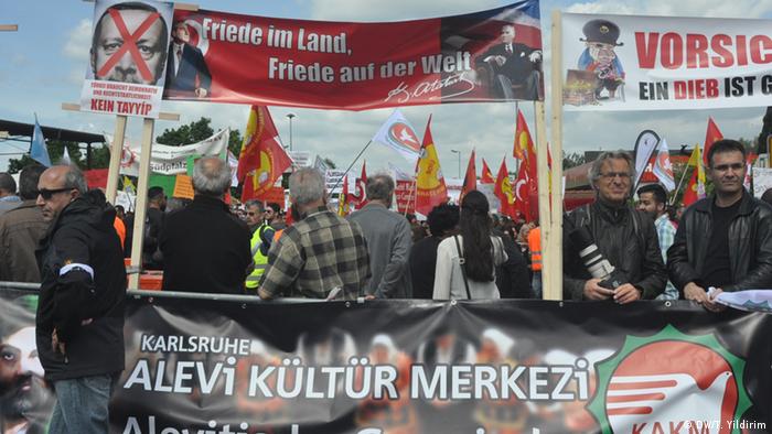 Erdoğan’nın konuşması öncesinde Almanya Alevi Birlikleri Federasyonu tarafından düzenlenen, ‘Erdoğan’ın azınlıkları dikkate almayan militarist politikalarını protesto’ mitingine binlerce Alevi katılmıştı.