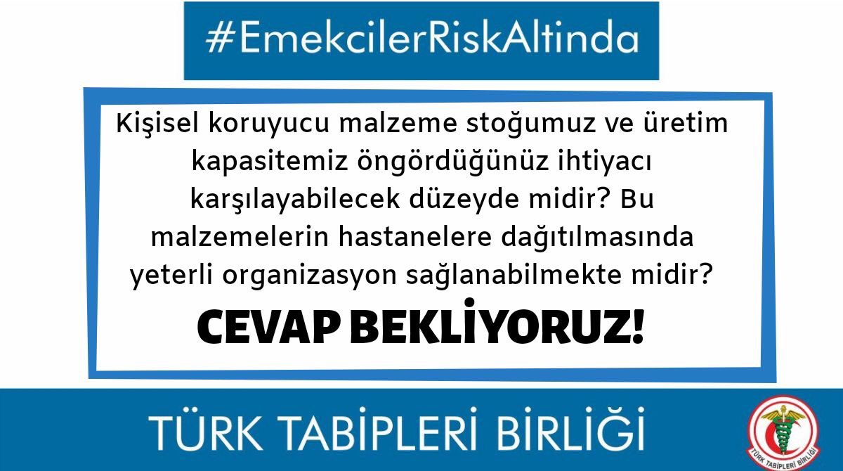 - Hekimlerden birliğimize kişisel koruyucu malzemelerin yeterli düzeyde olmadığı konusunda yoğun yakınmalar gelmektedir. Sağlık çalışanlarının COVID-19 hastalığından korunamaması ileride salgınla mücadeleyi aksatabilecek risk etkenlerinin başında yer almaktadır. Sağlık kuruluşlarının yeterli koruyucu ekipman sağlamadan sağlık çalışanlarını COVID-19 şüphesi/kanıtı bulunan hastalara hizmet vermeye zorlamaması ve sağlık kuruluşlarındaki koruyucu donanım eksikliklerinin bir an önce giderilmesi en öncelikli taleplerimizdendir. Bu nedenlerle: Kişisel koruyucu malzeme stokumuz ve üretim kapasitemiz öngördüğünüz ihtiyacı karşılayabilecek düzeyde midir? Bu malzemelerin hastanelere dağıtılmasında yeterli organizasyon sağlanabilmekte midir? Bakanlığınıza bağlı hastaneler dışında üniversite hastanelerine de dağıtım yapılmakta mıdır?