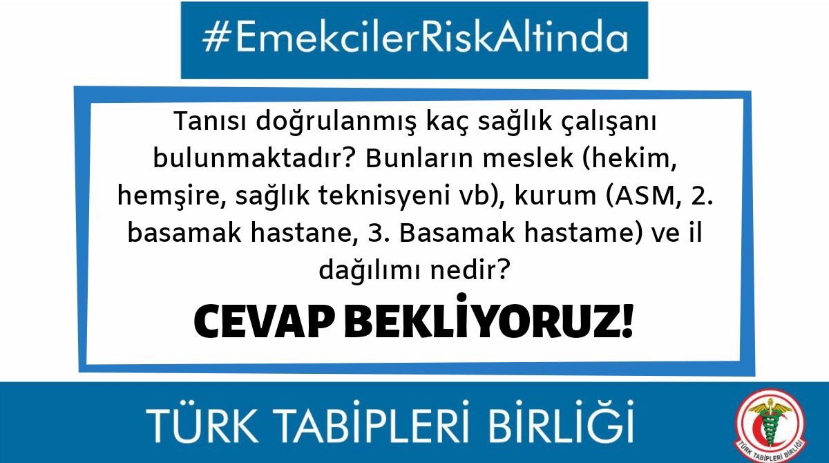 “Karşı karşıya olduğumuz salgın, merkezi ve yerel yönetimlerin, meslek örgütleriyle sivil toplum kuruluşlarının ve toplumun tamamının topyekün mücadelesi ile ancak baş edilebilecek boyutta bir tehlikedir. Toplumun; pandeminin ülkemizdeki yaygınlığı, bölgesel dağılımı, hasta ve ölüm sayıları hakkında yeterince bilgilendirilmemesi, meydanı paniğe sevkeden yanlış ve yanıltıcı haberlere bırakmaktadır” ifadelerine yer verilerek, TTB Merkez Konseyi Başkanı Prof. Dr. Sinan Adıyaman, acil yanıtlanması talebiyle Sağlık Bakanlığı’na şu soruları yöneltti: