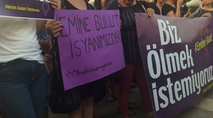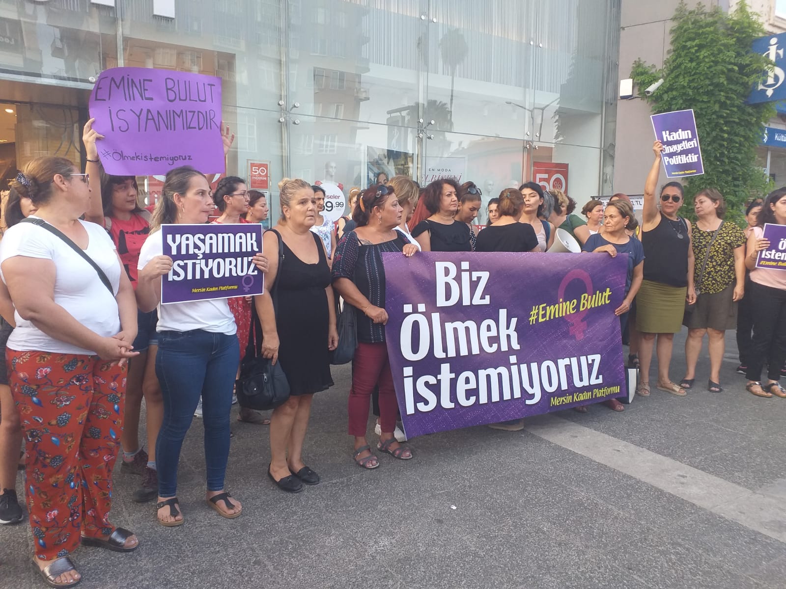 Mersin Kadın Platformu da kadın cinayetlerine tepki göstermek için sokağa çıktı. Pozcu İş Bankası önünde toplanan kadınlar, burada “Kadın cinayetleri politiktir”, “Susmuyoruz, korkmuyoruz, itaat etmiyoruz” ve “Emine Bulut isyanımızdır” sloganı attı.