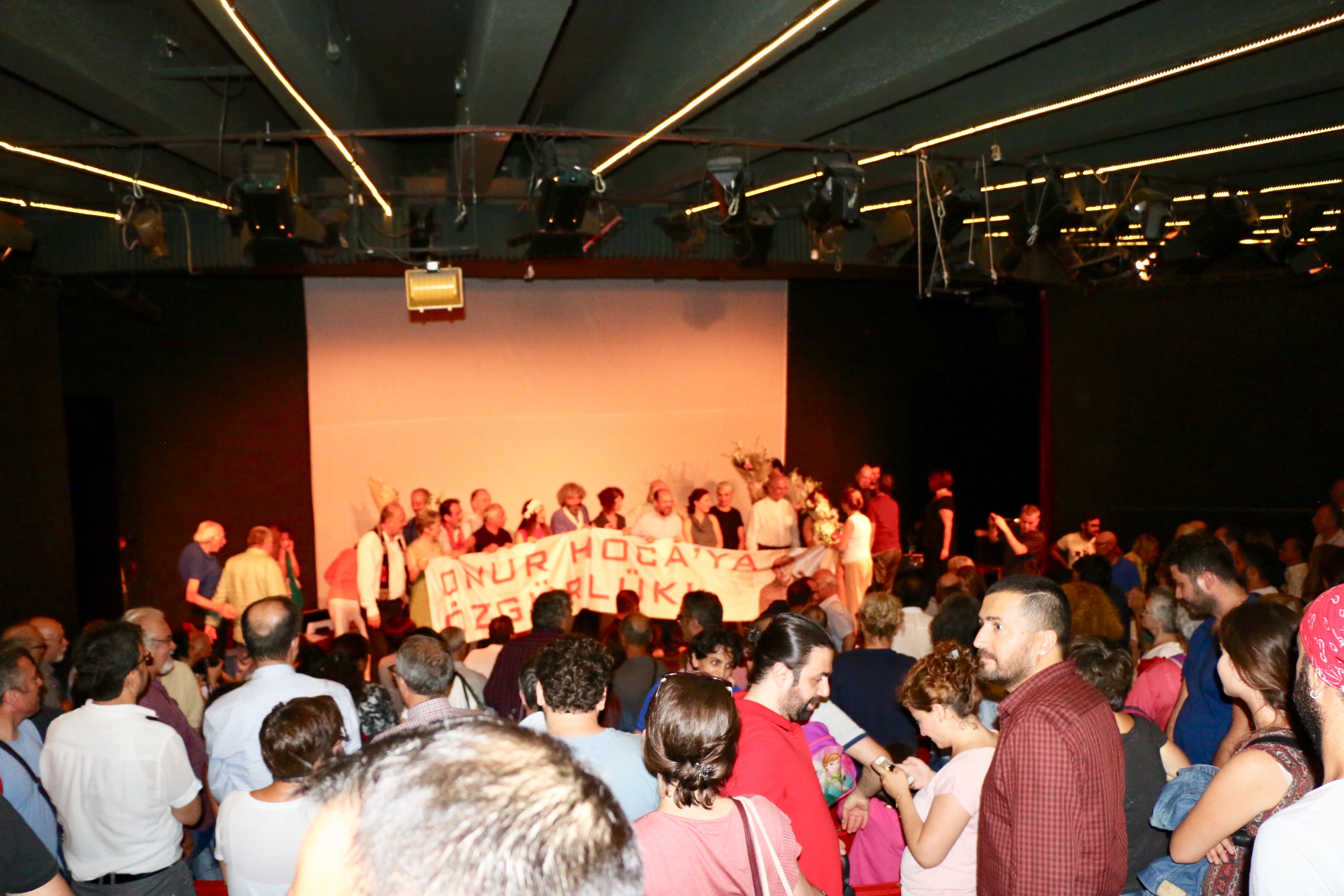 Tutuklu bulunan TTB Toplum ve Hekim Dergisi Editörü Prof. Dr. Onur Hamzaoğlu için Ankara Sanat Tiyatrosu’nda okuma tiyatrosu düzenlendi. Birçok kurum temsilcisinin katılım gösterdiği etkinlikte konuşmalar yapıldıktan sonra tiyatro gösterimi gerçekleşti.