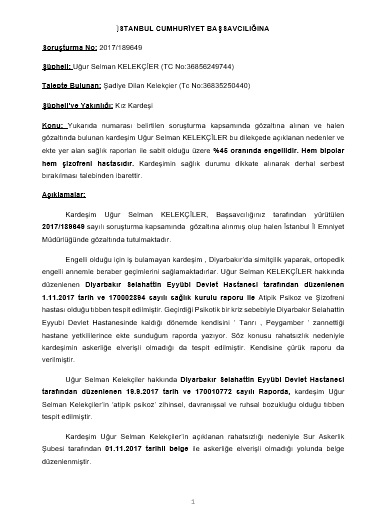 Doğan, “Mahkemede yedi günlük bir adli tıp gözlem kararı verildi. Ama bu gözlem kararının verilmesine rağmen herhangi bir Adli Tıp Kurumu’nda randevu alınmış değil. Geçen gün Bakırköy Ruh ve Sinir Hastanesi’ne götürmüşler Selman’ı. Yer yok diye geri göndermişler. Cezaevi idaresinin doktoru da hasta olarak yatışı gerekiyor diye rapor vermesine rağmen hastanede yer yok diye geri gönderiyorlar.”