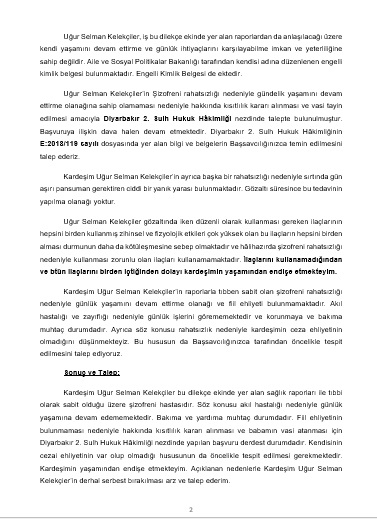 En temel ihtiyaçlarını dahi karşılayamayacak durumda olan Kelekçiler’in tekli koğuşa konulmaya çalışıldığını vurgulayan Doğan, “Yaşamsal şeyleri bile tek başına yapamayan bir insan hücrede ve tekli koğuşta kaldığı zaman akıbeti çok çok kötü olur. Bir an önce Selman ve diğer hasta tutsaklar için harekete geçilmesi gerekiyor.” dedi.