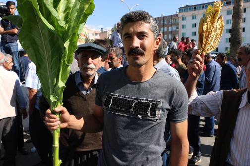 “Tütünüme alın terime dokunma” diyen Cengiz Fırat ise“ Bu tütüne yediden yetmişe herkes emek veriyor. Tek geçim kaynağımız tütündür o da elimizden alınırsa çaresiz bir şekilde ortada kalacağız. Evimizin ve çocuklarımızın bütün ihtiyaçlarını tütünden kazandığımız para ile karşılıyoruz. O yüzden biz emeğimize sahip çıkmaya devam edeceğiz” dedi.