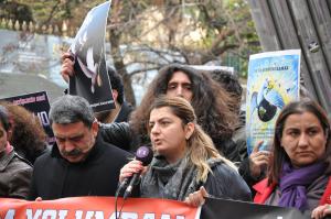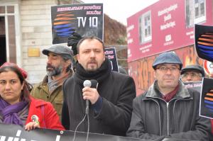 Bu haftanın basın açıklamasında ilk konuşmayı Tv10 Yönetim Kurulu Başkanı Veli Büyükşahin yaptı. “Bugün birçok gazeteciyi ve sivil toplum örgütünü üyelerini tutukladılar” diyen Şahin, bununla da yetinmeyip Alevi Bektaş-i Federasyonun örgütlenmeden sorumlu aynı zamanda Sultangazi Pir Sultan Abdal Cemevi Başkanı Zeynal Odabaş’ının da gözaltına alındığını hatırlattı. Büyükşahin, tüm bunların Alevi toplumuna yönelmiş bir tehdit mesajı olarak algıladıklarını söyledi. Alevi toplumunun sevgi ve barışı her zaman öne çıkardığını söyleyen Büyükşahin, “İnsanların inançlarına yaşam biçimlerine müdahale edilmesin her zaman bunu talep ettik bunu istedik. Alevi toplumunun temel bakış açısı budur. Bize yönelik olan bu tehdit ve karartmayı Alevi toplumuna Türkiye toplumuna yönelik olarak görüyoruz. Lokmalarımız ile kurmuş olduğumuz cemevleri ve televizyonlarımıza bu müdahaleyi Alevi toplumuna bir tehdit olarak görüyoruz. Zeynal Odabaş’ı da Alevi toplumunun sorunlarını sıkıntılarını sona erdirmek için çaba harcayan bir canımızdır” diye konuştu. Büyükşahin, 5 gündür gözaltında olan Odabaş’ın derhal serbest bırakılmasını talep etti.