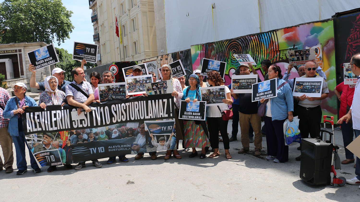 Tv10’nun yeniden açılması için kanal emekçilerinin başlattığı eylem 37. haftasında da devam etti. “Alevilerin sesi Tv10 susturulamaz” pankartının açıldığı eylemde “Alevilerin sesi susturulamaz”, “Özgür basın susturulamaz” sloganları atıldı. 37. Haftaya Munzur Çevre Derneği, Sarıyer Maden Mahallesi Derneği Başkanı Ali Doğan, Mücadele Birliği Üyeleri, DAD üyeleri, Erenler Cemevi Başkanı Ali Çiftçi, Cumartesi İnsanları, Demokrasi İçin Birlik’ten Servet Demir, TV10 emekçileri ve izleyicileri destek verdi.