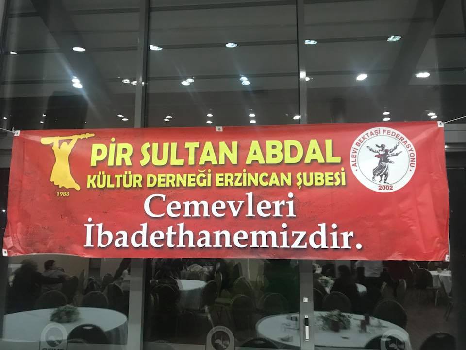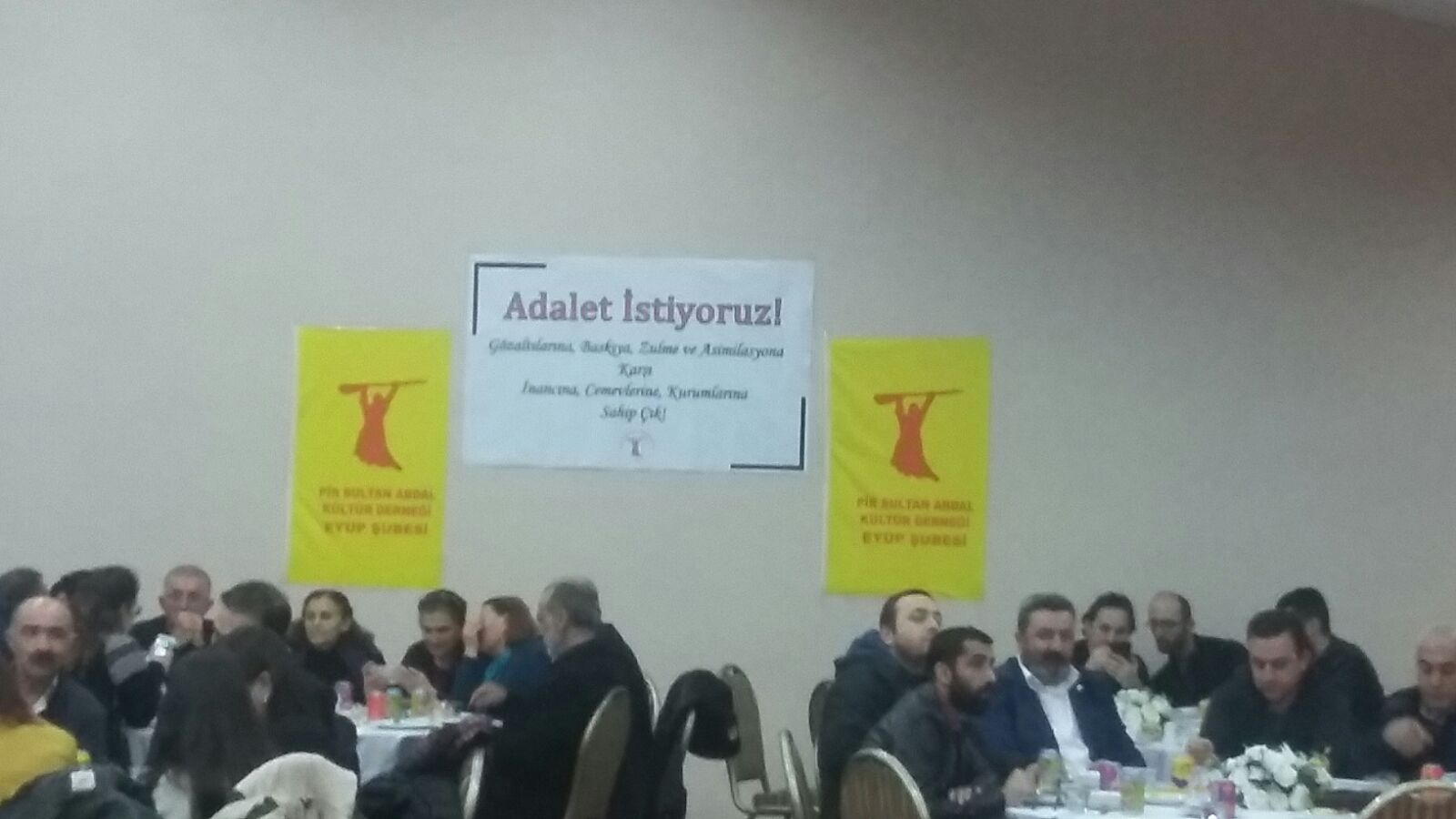 İstanbul Alibeyköy’de Erzincan Ulalar Cemevi için dayanışma gecesi düzenlendi. Salona ‘Ulalar Kültür Merkezi İçin Bir Tuğlada Sen Koy,’ ‘Cemevleri İbadethanemizdir,’ ‘Adalet İstiyoruz’ yazılı pankartlar asıldı.