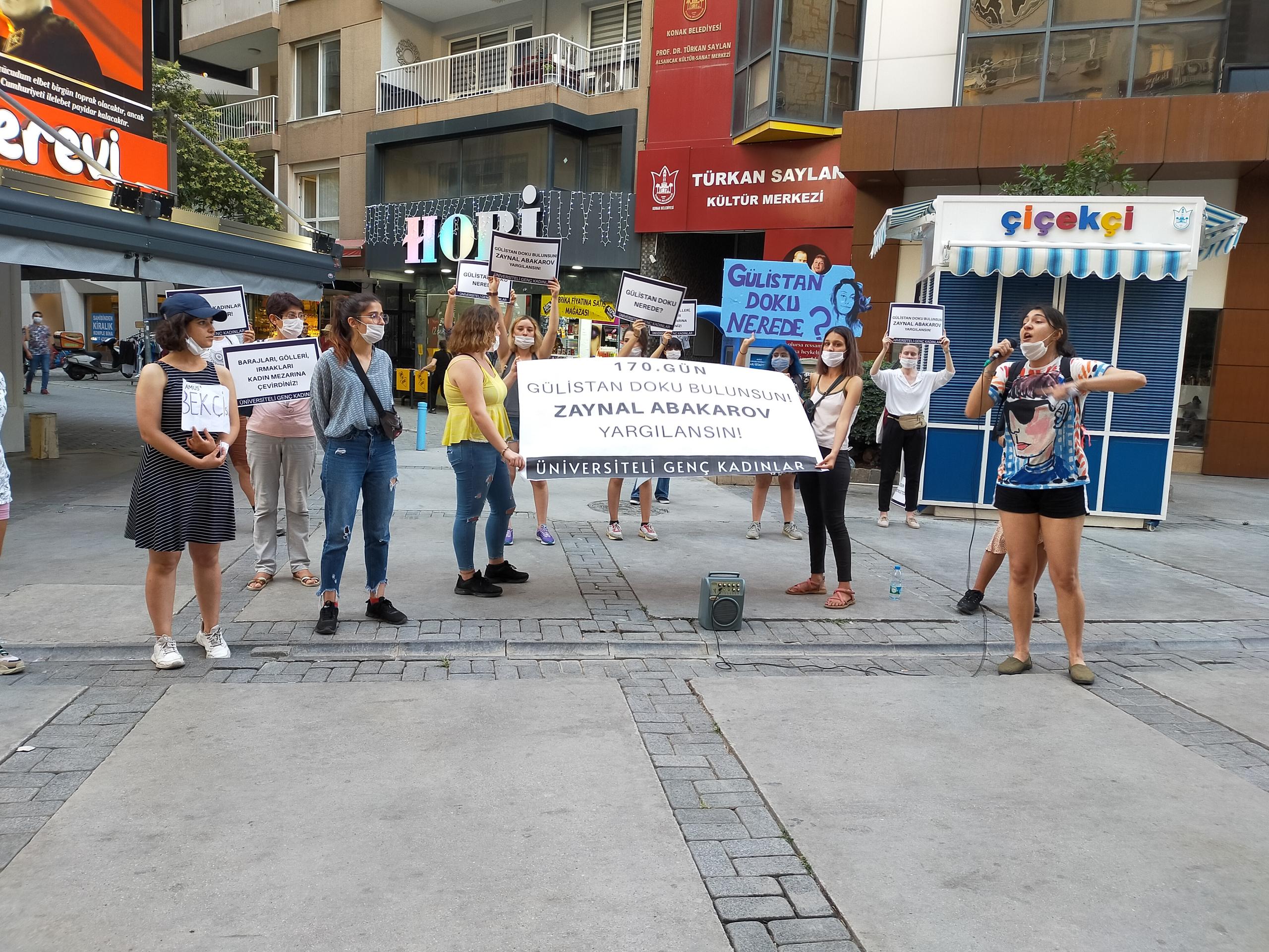 PİRHA – İzmir’de Üniversiteli Genç Kadınlar, 170 gündür kayıp olan Gülistan Doku’nun bulunması, baş şüpheli Zaynal Abakarov yargılanması için açıklama yaptı.