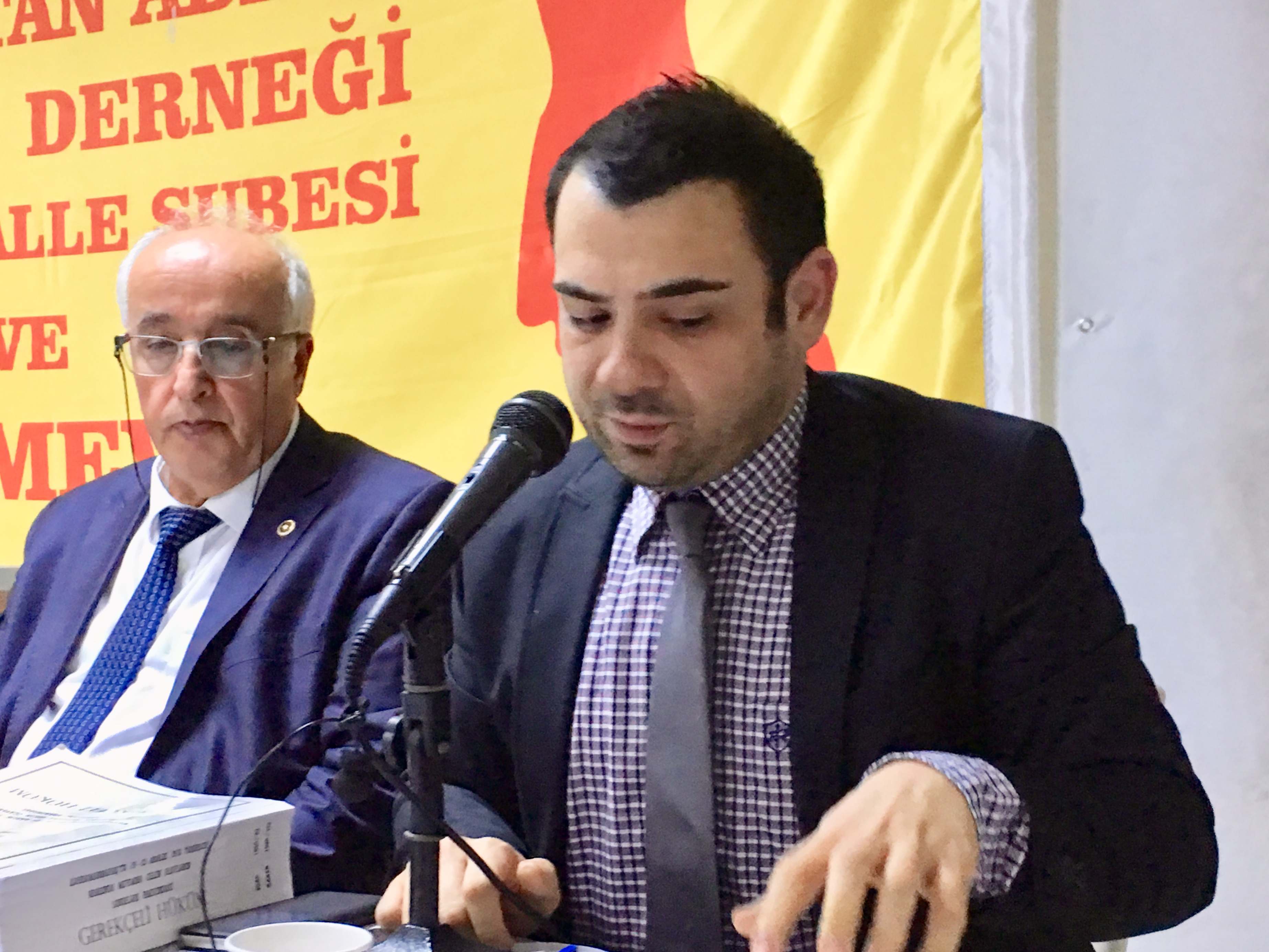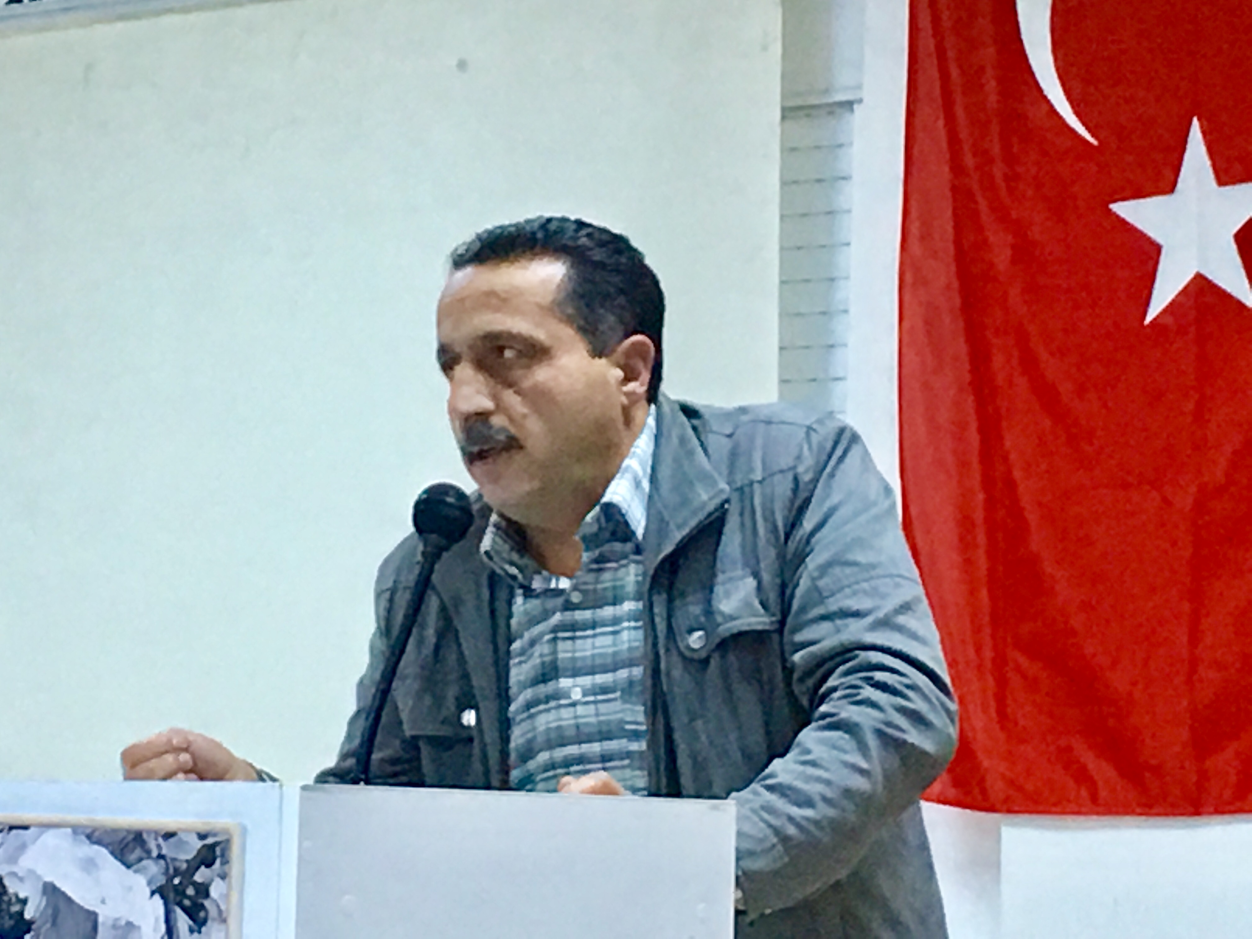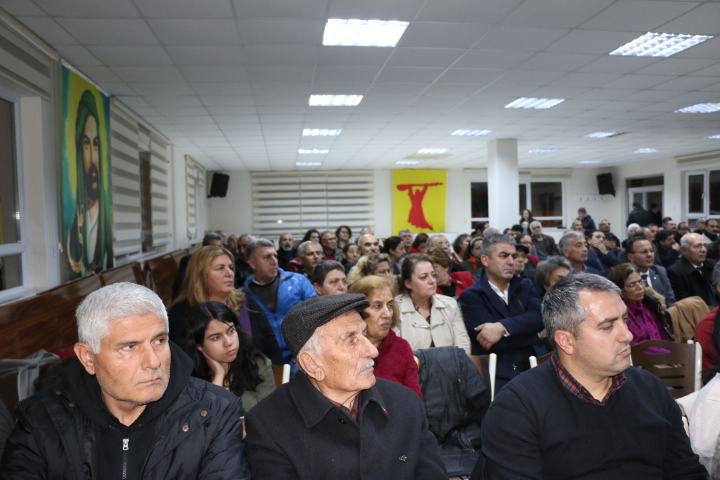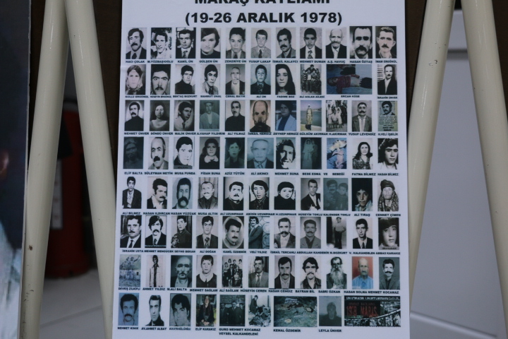 “Maraş katliamı olduğu dönemde 10 yaşındaydım. 17 Aralık’ta yaşadığımız yer eski yapı olduğundan dolayı büyüktü salonda korunduk. 50-55 kişiydik. Olayın yaşandığı gece ve 17 Aralık’ta 2-3 gün evimizde olan bütün eşyaları caddeye yığıp yaktılar. Bir başarı elde etmeye çalışıyorlar. Maraş katliamında resmi belgelere göre 110 kişi bunların 33-34’ü akrabamdır. Kürsünün önünde olan resim babamın resmidir. 25 Aralık’ta Kayseri’de askerlerin gelmesi bizim nefes almamıza sebep oldu. Ben yaşadığım yerden bahsediyorum sadece okulda tahminim biz üç gün kaldık. Soğuk havalarda üç gün dört gün yaşadık. Daha sonrasında akrabalarımız geldi bizi oradan aldı. Öyle bir acı ki bir olay değil gerçekten bir soykırımdı. Maraş olayları benim gözümün önünden amcamın kafasını kesip dört kişi top oynadı. Bizi 50 kişilik bir odadan alıp boğazımızı kesenler aynı kişilerdi. Bu kişiler şu sözleri söyleyerek kestiler. Benim başbuğum burada sizin Başbakanınız nerede.”