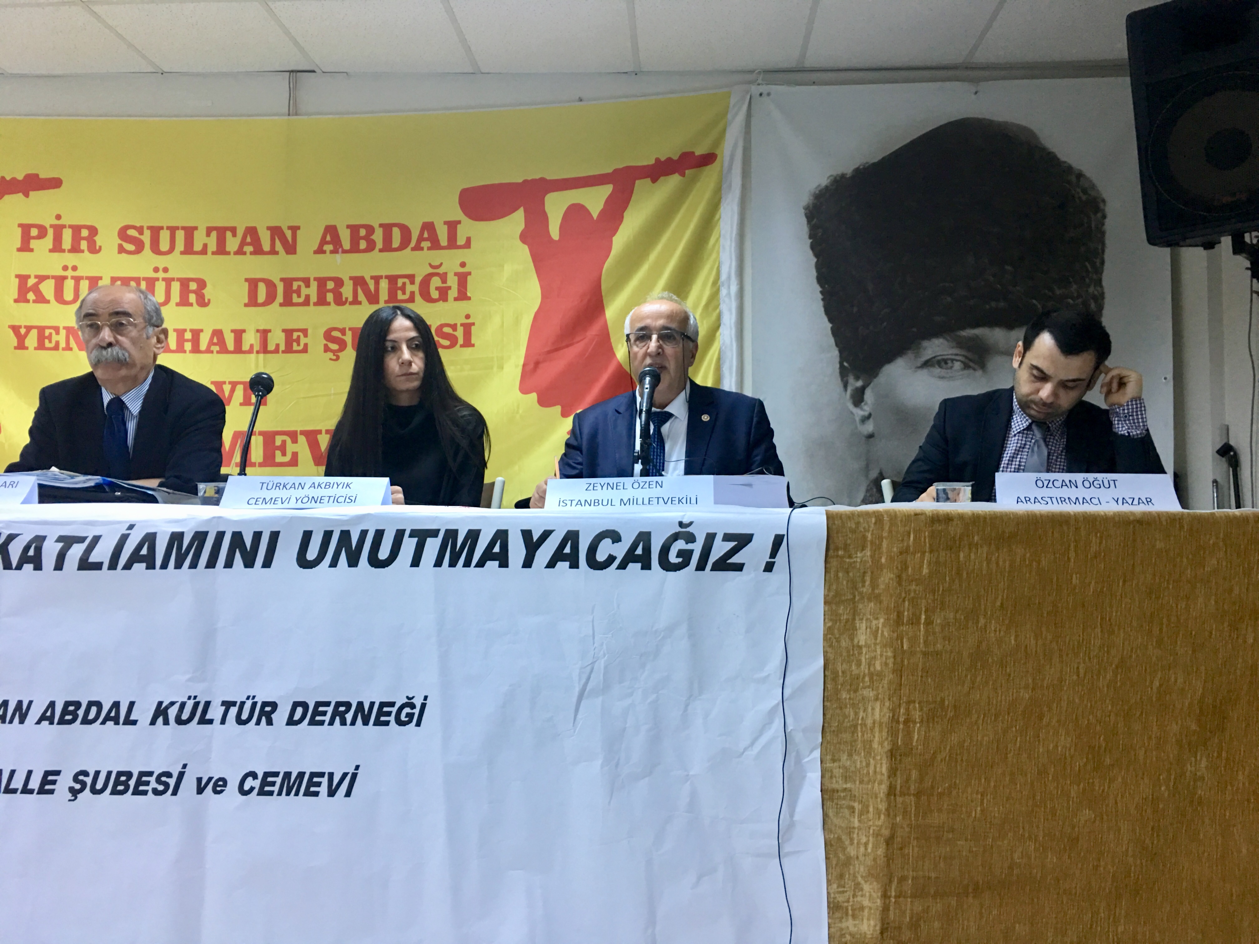 Paneli PSAKD Yenimahalle Şube Batıkent Cemevi yöneticilerinden Türkan Akbıyık’ın yönetti. Maraş Katliamı tanığı, HDP İstanbul Milletvekili Zeynel Özen, SHP Eski Ankara milletvekili Hukukçu Kamil Ateşoğulları, Makbul Alevilik kitabının yazarı olan Araştırmacı yazar Özcan Öğüt panelist olarak katıldı. Panel katliamlarda yaşamını yitirenler için 1 dakikalık saygı duruşu ve Hüseyin Gazi Metin dedenin gülbengi ile başladı.