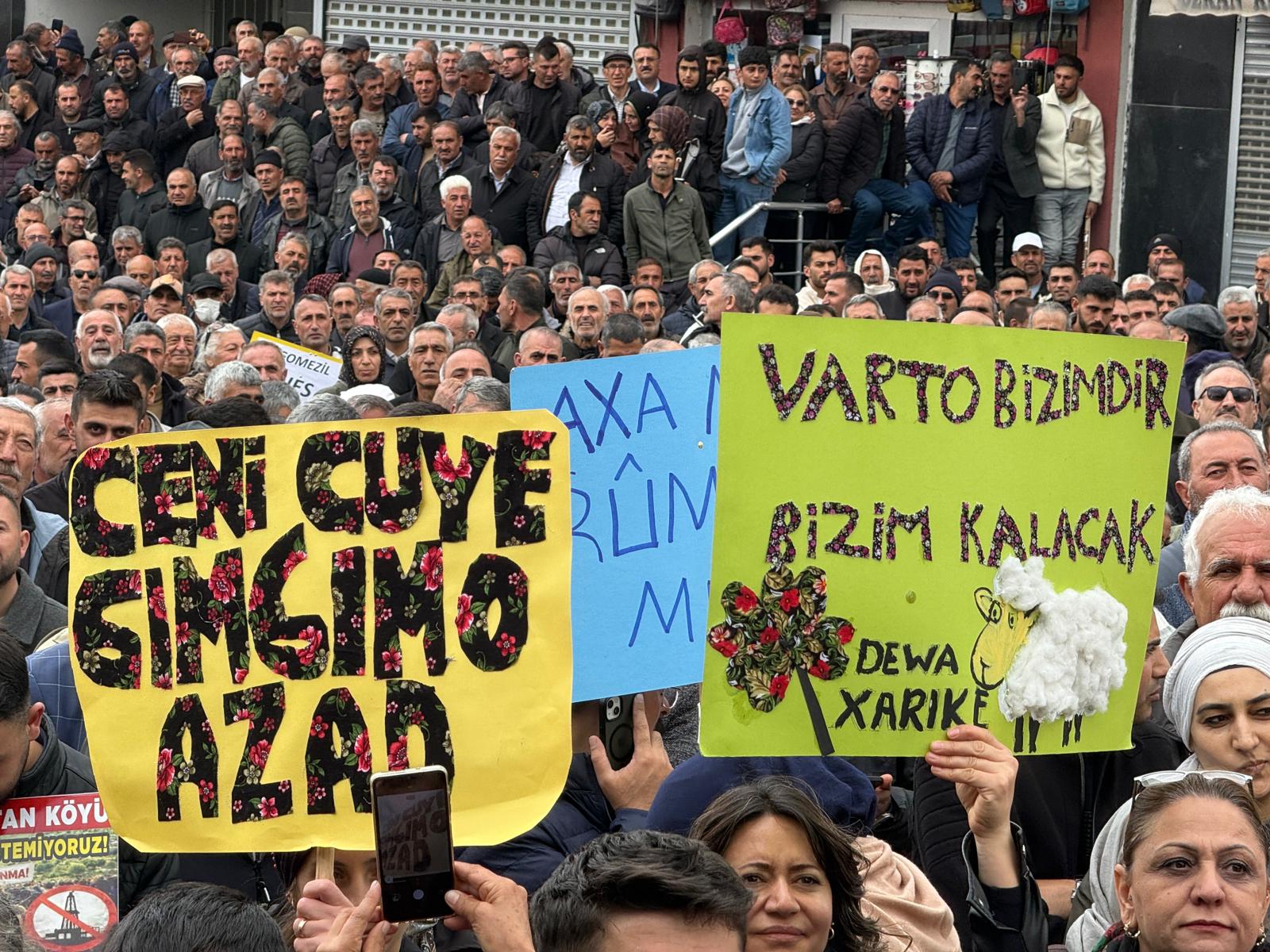 Yürüyüşle başlayan eylemde sık sık, “Varto JES istemiyor”, “Susma, sustukça sıra sana gelecek”, “Suyuma, toprağıma, havama dokunma” sloganları atılıyor.