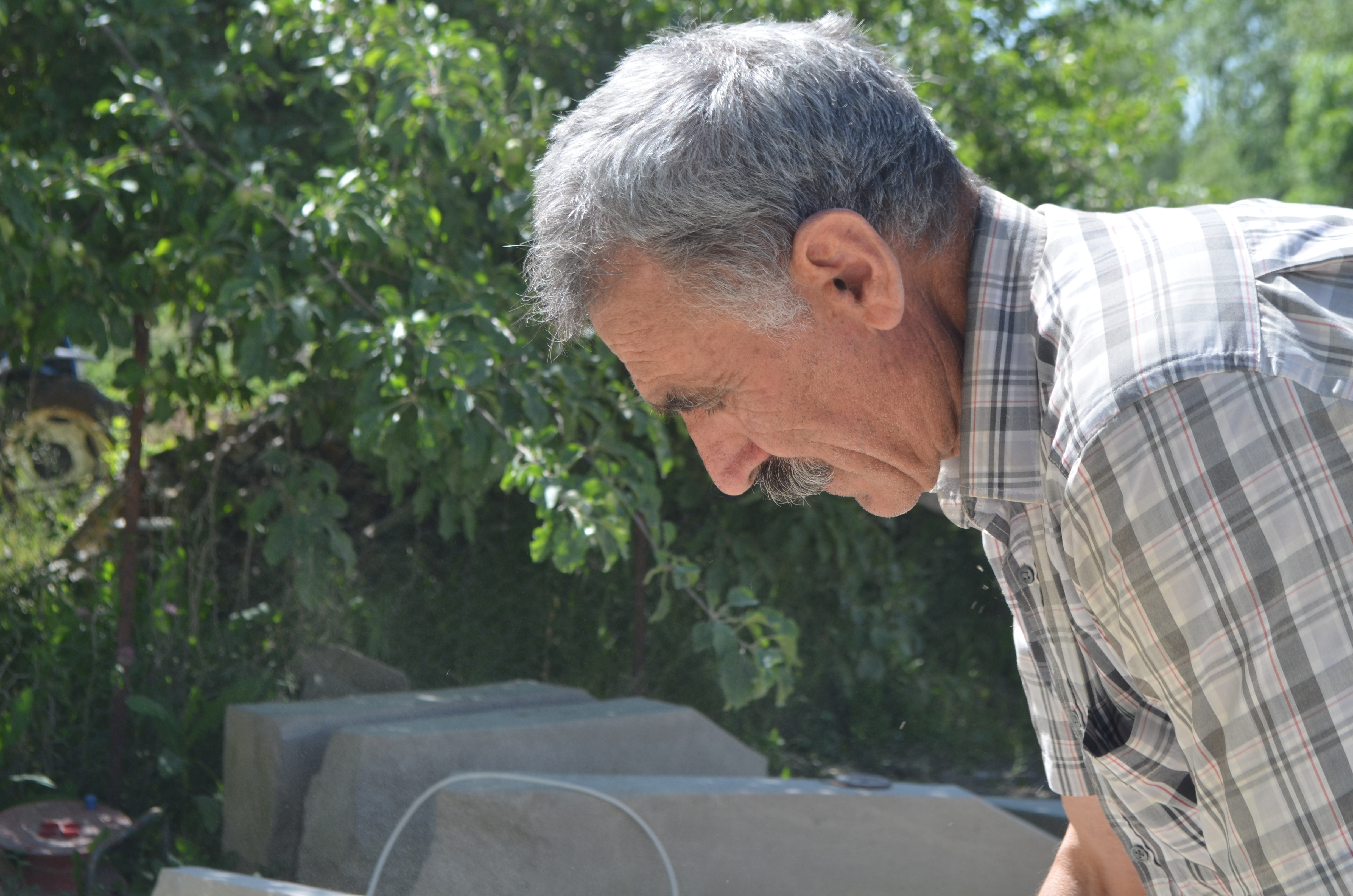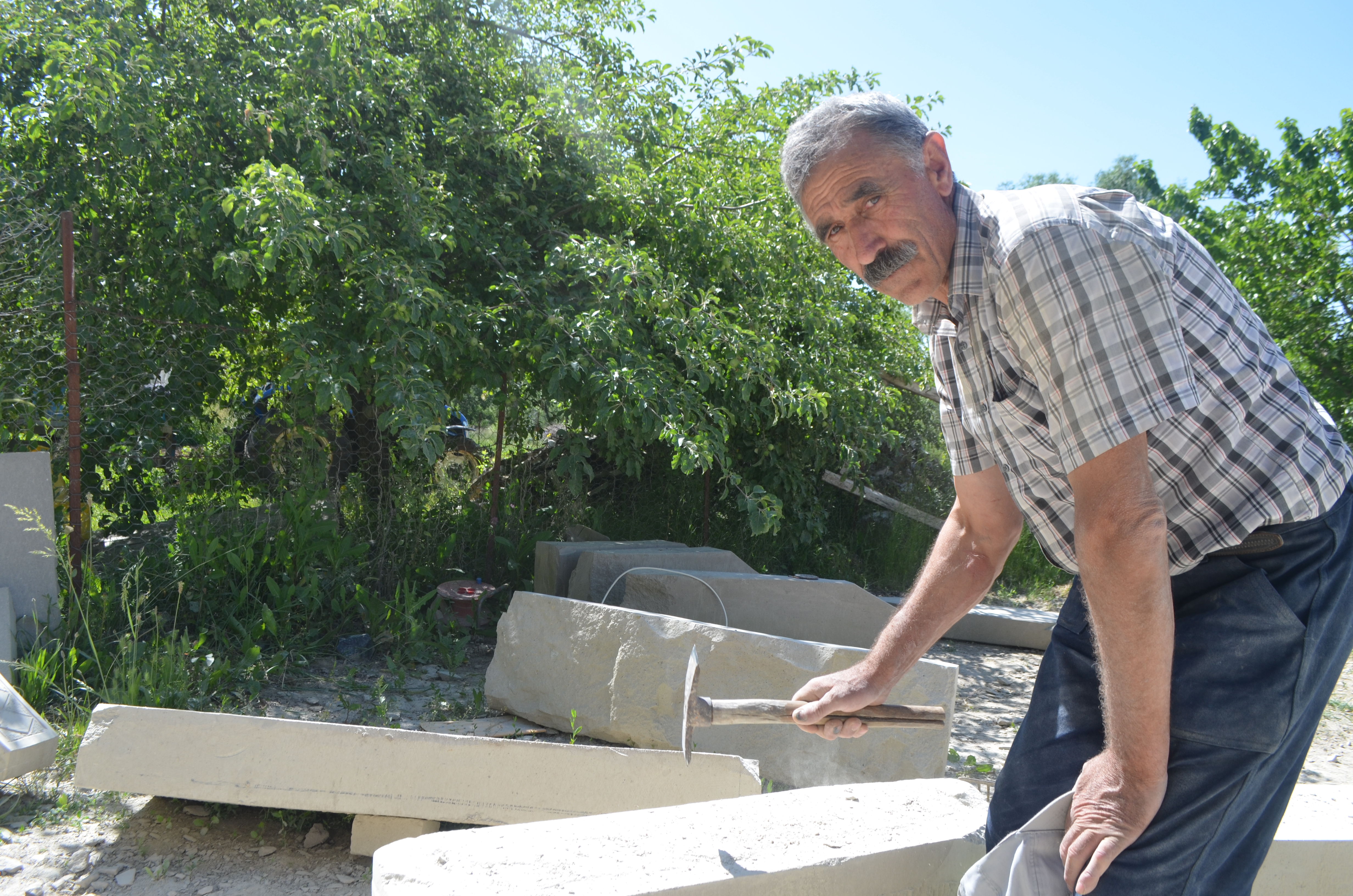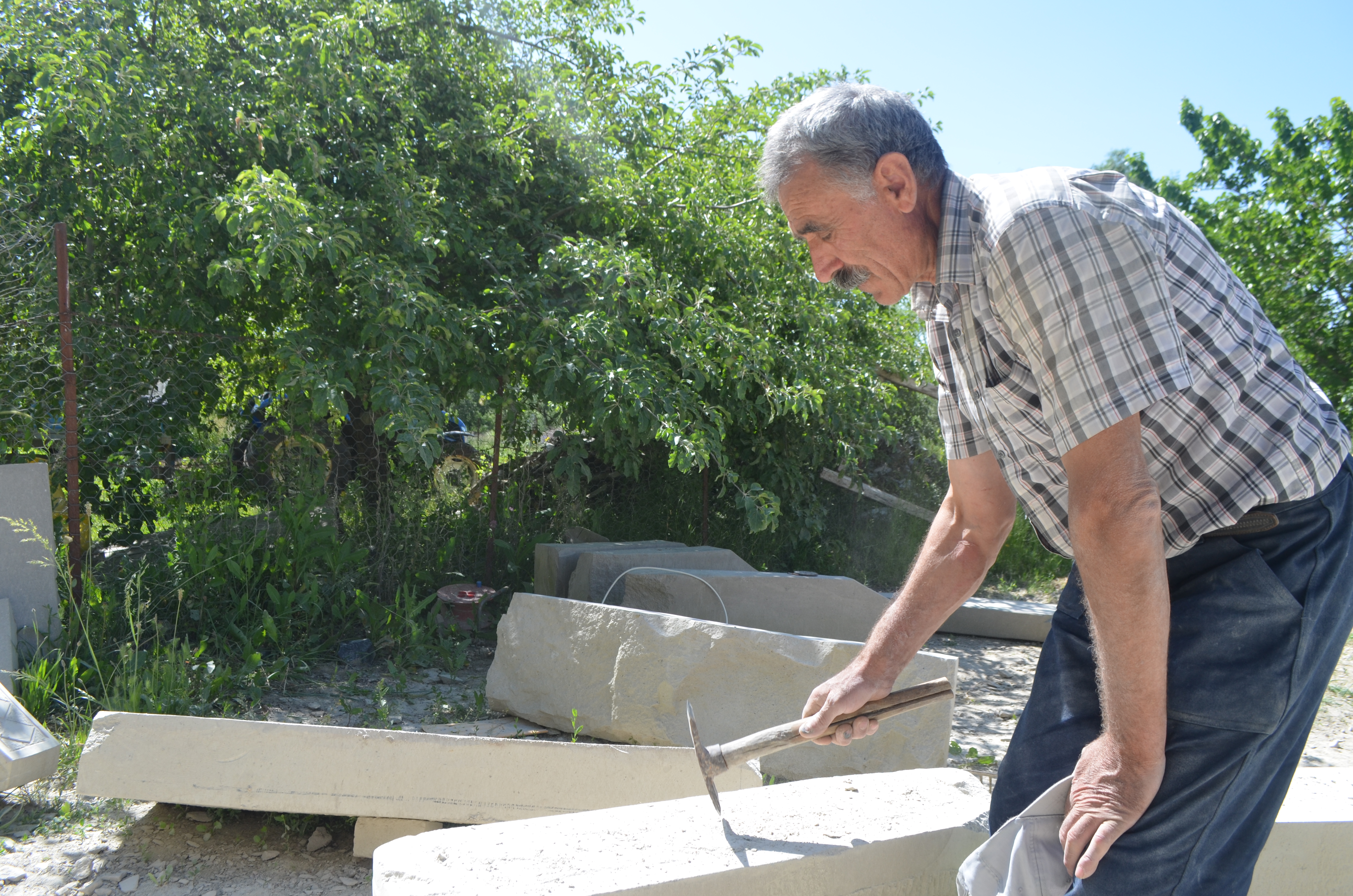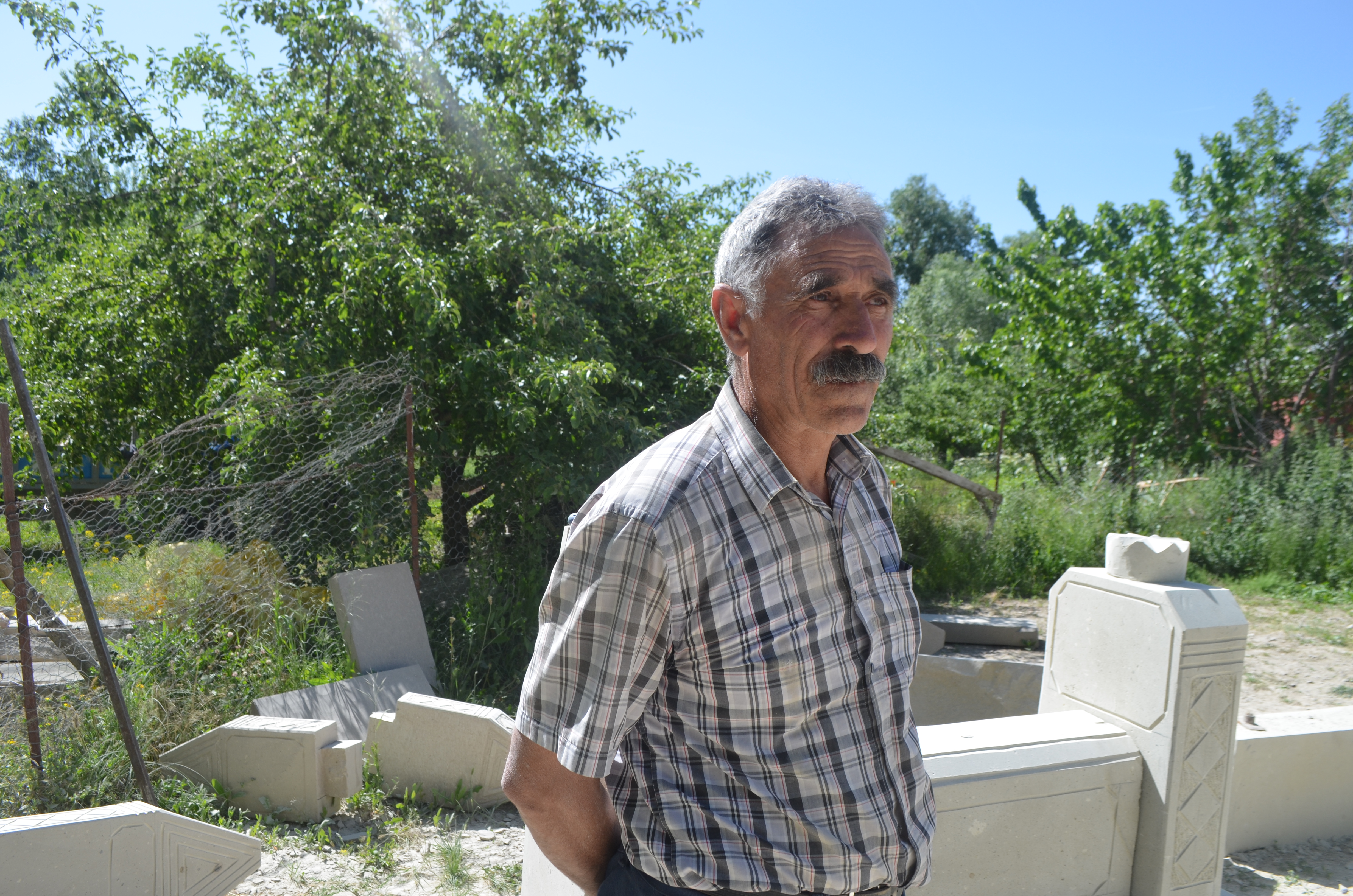 “Sert taşlar işimi zorlaştırıyor tabii ki. Taşların bir kısmını Elazığ’dan bir kısmını Bingöl Karlıova’dan bir kısmını da Erzurum Hınıs’tan getiriyoruz. Köydeki tek mezar ustasıyım. Çırağım yok. Bundan sonra da bu köyde mezar işini yapacak bir insan olacağını tahmin etmiyorum. Kaza yapmaya çok meyilli bir iş, bazen müşterilerinin istediği şekilde olmayabiliyor. En iyi şekilde de yapmış olsam eleştiriler alıyorum tabii ki. Geçimimi bu meslekten sağlıyorum arada bir hayvancılıkla uğraşsam da hayvancılık sezonluk bir iş olduğundan asıl meslek olarak mezarcılık yapıyorum.”