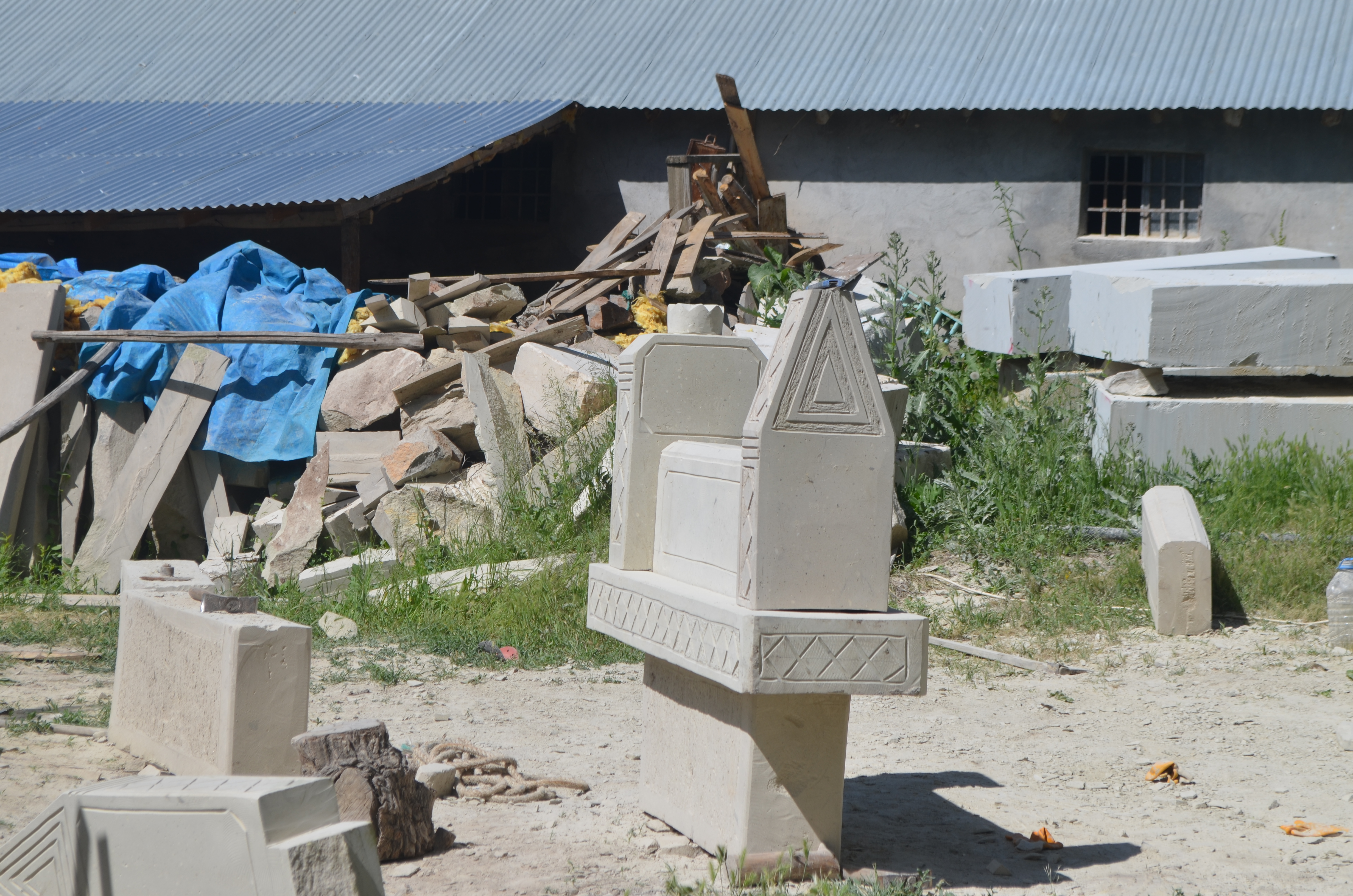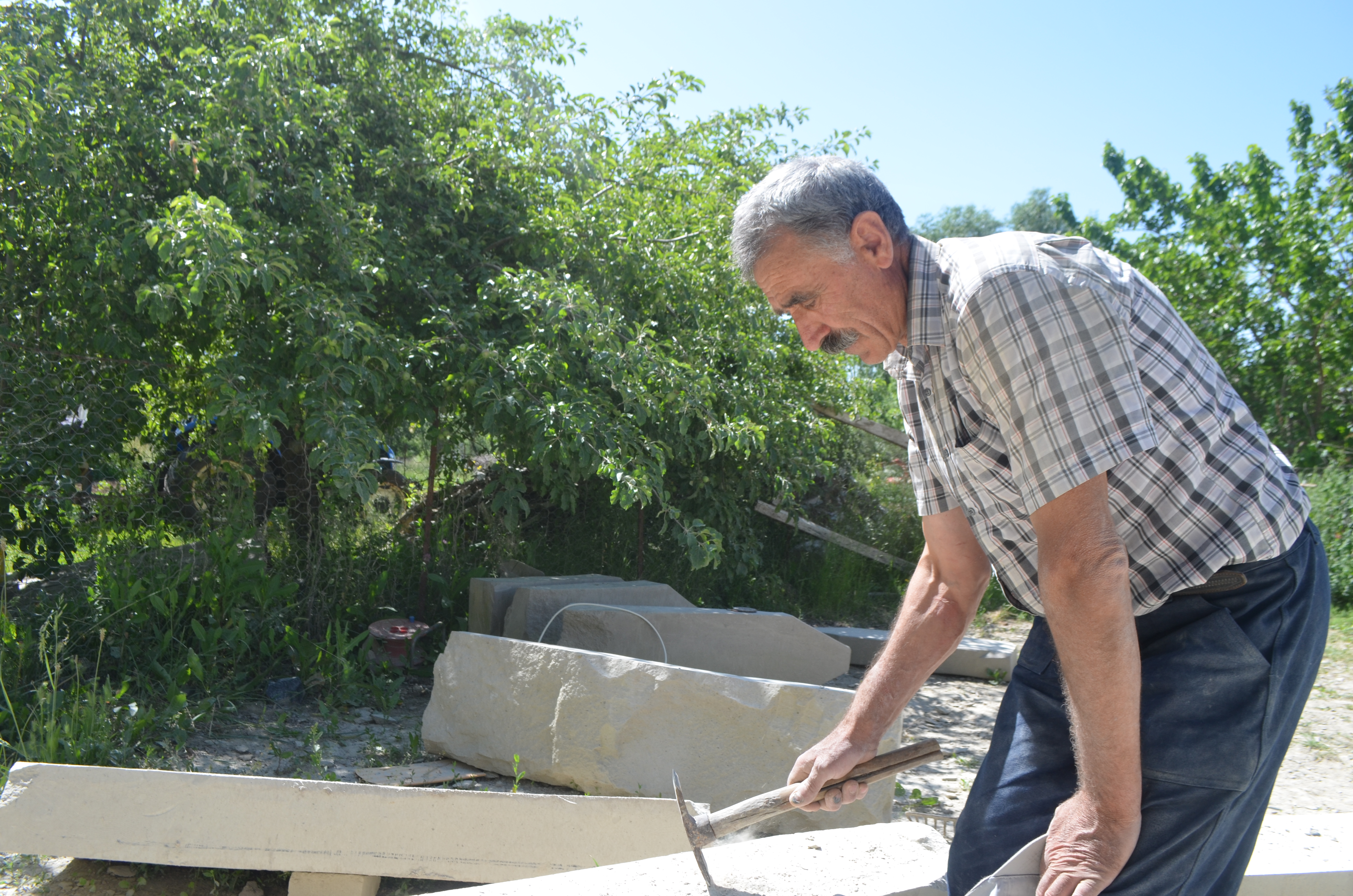 PİRHA- Mustafa usta 25 yıldır sıcak soğuk demeden köyünde mezar taşı yapıyor. Günün ilk ışığında çekiciyle taşa şekil vermeye başlayan Mustafa Korkmaz, unutulmaya yüz tutan bu zanaat ile ilgilenmemesinden dert yanıyor. İşini zevkle yapan Mustafa usta, mezar taşlarından arda kalan molozu ise köyün bozuk, çamurlu yollarına döşüyor.