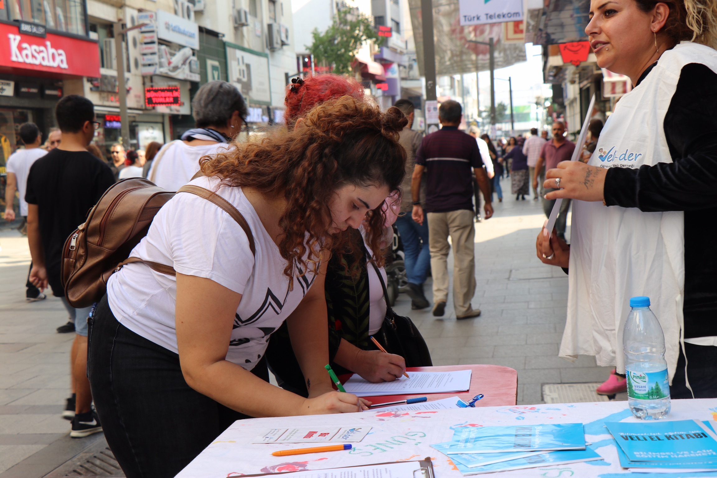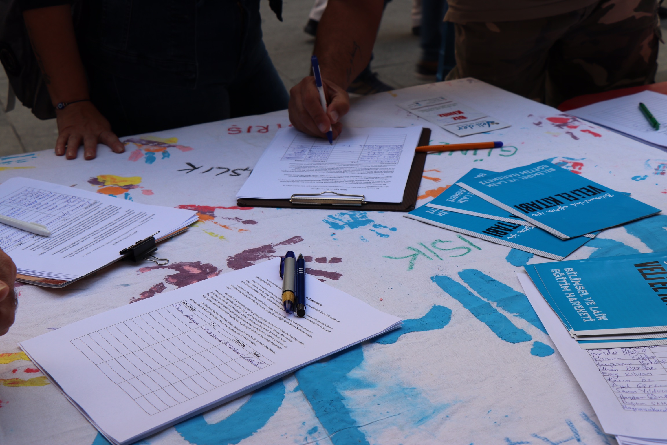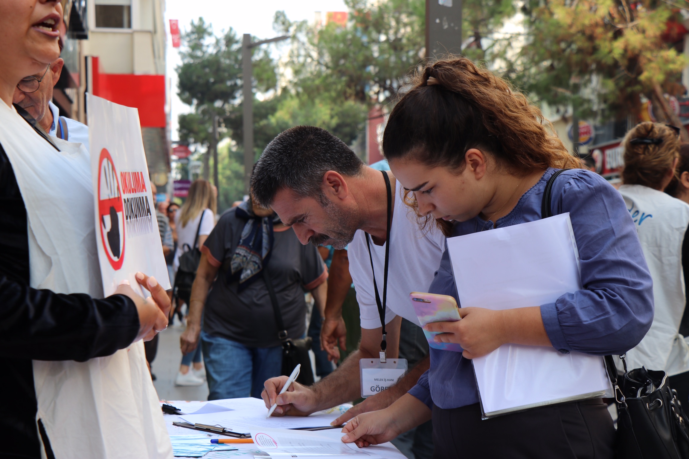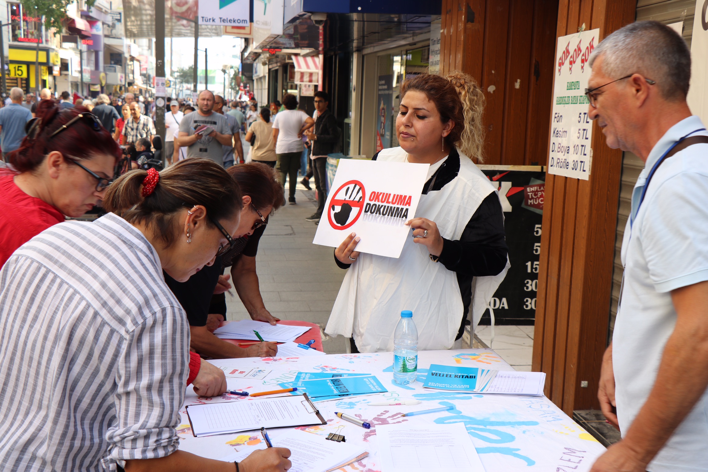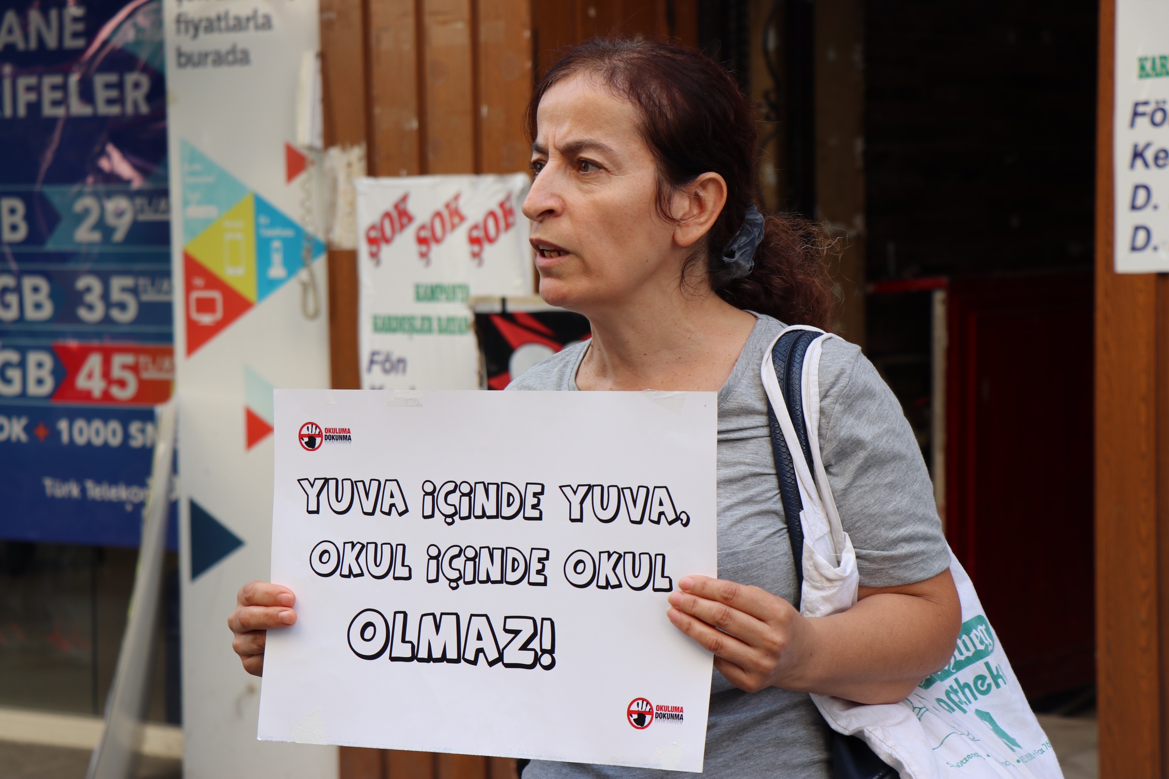 “Okuluma dokunma”, “Yeterli koşullarda tam gün eğitim istiyoruz”, ve “Yuva içinde yuva, okul içinde okul olmaz” dövizlerinin taşındığı imza kampanyası standında veliler yaşadıkları sorunlara dair yurttaşları bilgilendirdi.