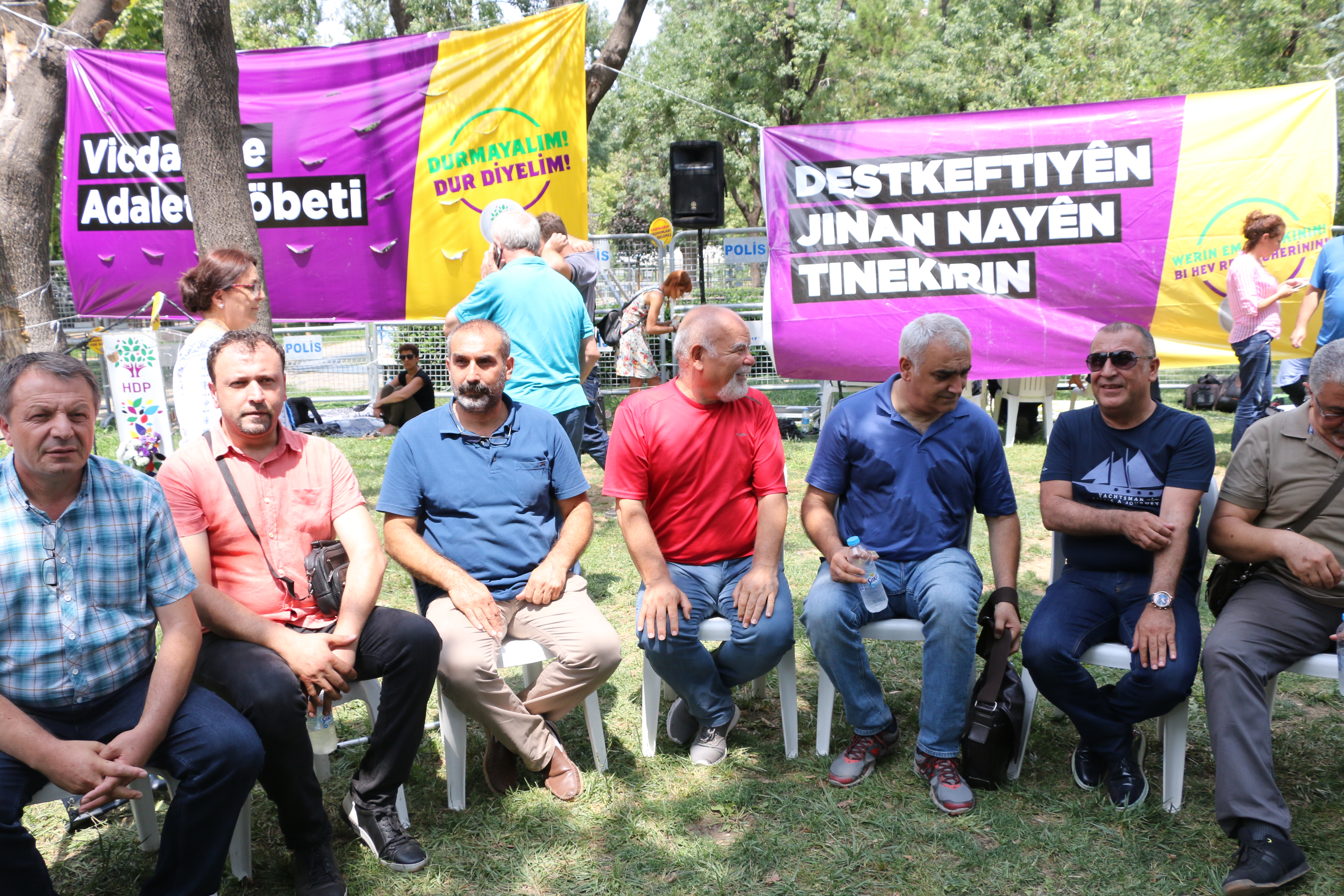 Dersimliler Derneği Başkanı Ruhi Çelik’de konuşma yaparak, “21’inci yüzyılda bu tablo yüz karasıdır. Bu ülkede adalet ve vicdanın herkes tarafından bilinerek sahip çıkılması gereklidir. Biz HDP’nin nöbetini destekliyor ve mücadeleleri mücadelemizdir diyoruz” dedi. (S.K/İ.S)