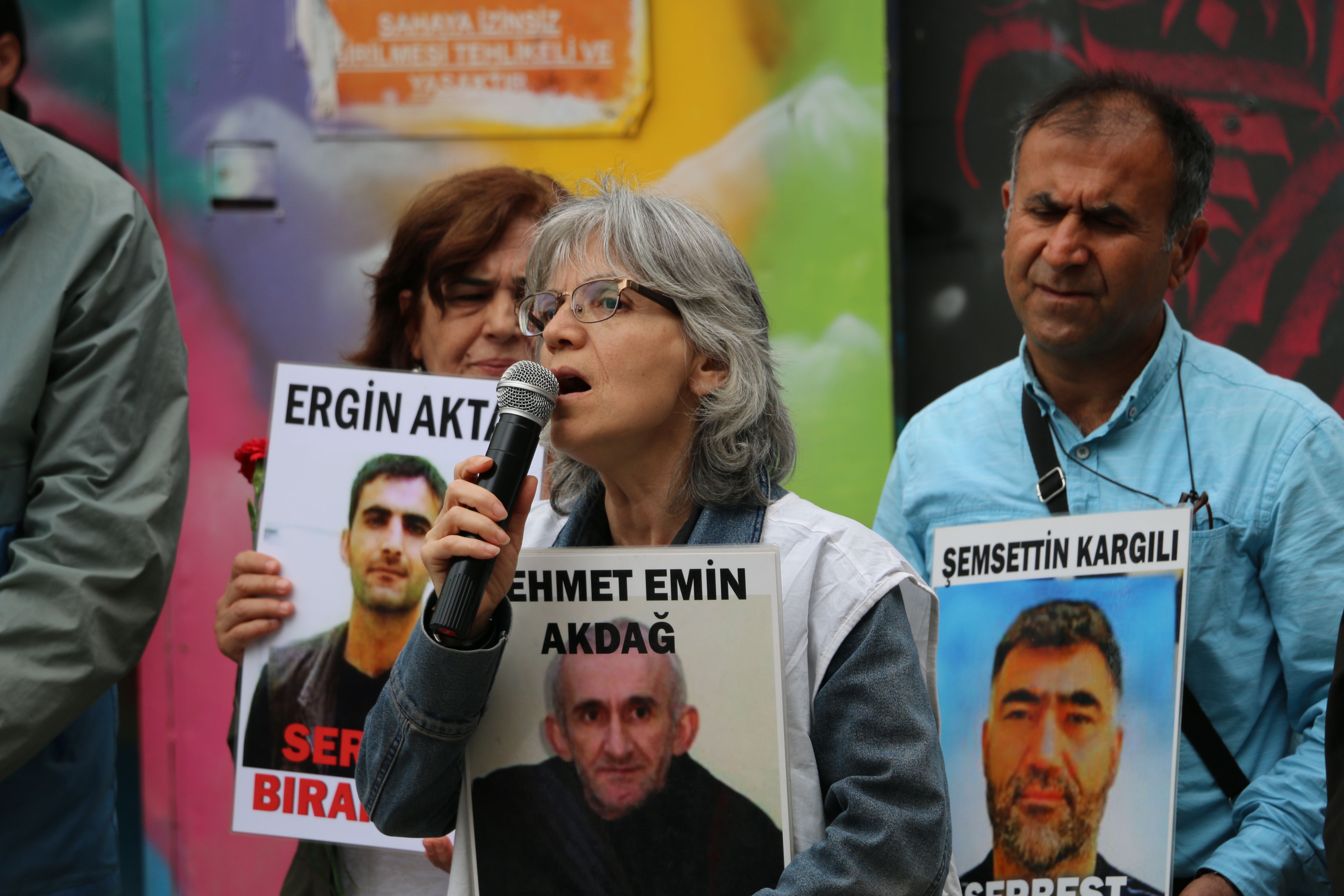 “Hasta mahpuslar serbest bırakılsın”, “Yıldız Gemicioğlu serbest bırakılsın”, “Tecrit öldürür dayanışma yaşatır” pankartlarının açıldığı eylemde “Yıldız Gemicioğlu serbest bırakılsın”, “Onursuz arama işkencesine son”, “İnsanlık onuru işkenceyi yenecek” sloganları atıldı. Eyleme birçok insan hakları savunucusu katıldı.