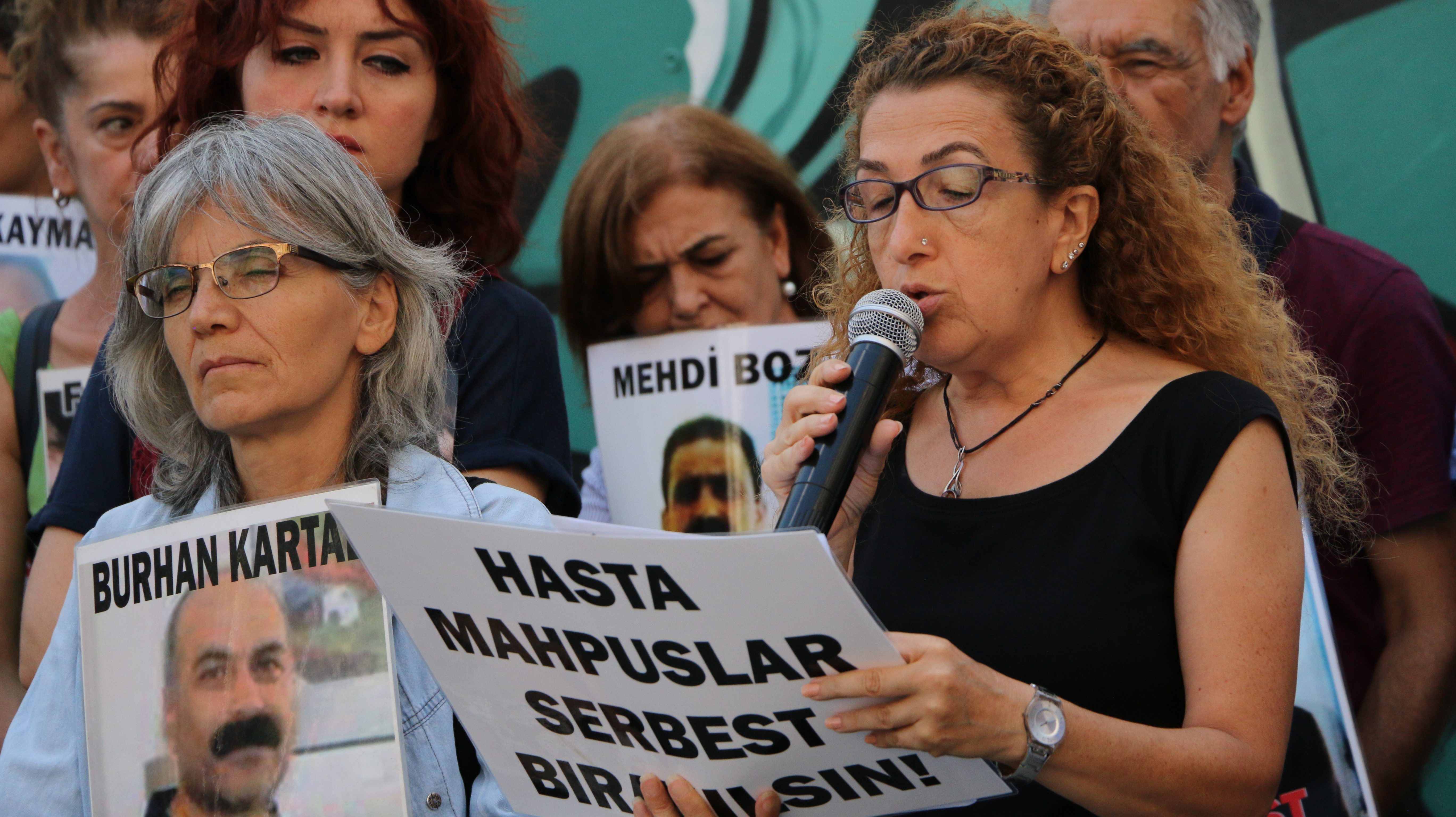Eylemde insan hakları savunucuları adına basın metnini okuyan Meryem Bars, hapishanelerde ‘Hero’ tişörtleri bahane edilerek yazılı tişörtlerin toplatıldığını, kitap yasakları ve keyfi uygulamaların sürdüğünü belirtti. Bazı hapishanelerde tek tip elbise için denemeler biçiminde nabız yoklandığını kaydeden Bars, siyasi tutukluların tepkilerinin tek tip elbiseyi kabul etmeme ve giymeme yönünde olduğunu söyledi. Hasta tutukluların ölüm sınırına geldiklerinde sorumluluktan kurtulma amaçlı tahliye edildiklerine vurgu yapan Bars, 22 Ağustos tarihinde hasta tutuklu Ahmet Bayar’ın 4. aşamada olan kanser hastalığından dolayı tahliye edildiğini belirtti.