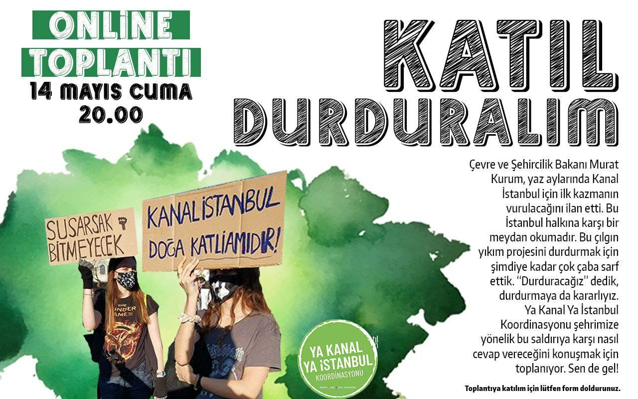 Ya Kanal Ya İstanbul Koordinasyonu, Kanal İstanbul projesini durdurmak ve bu saldırıya nasıl cevap verileceğini konuşmak için 14 Mayıs Cuma günü saat 20.00’de çevrimiçi toplantı düzenleyecek.