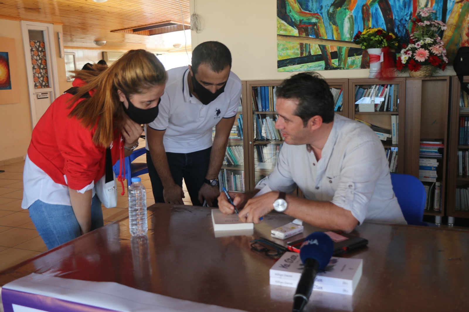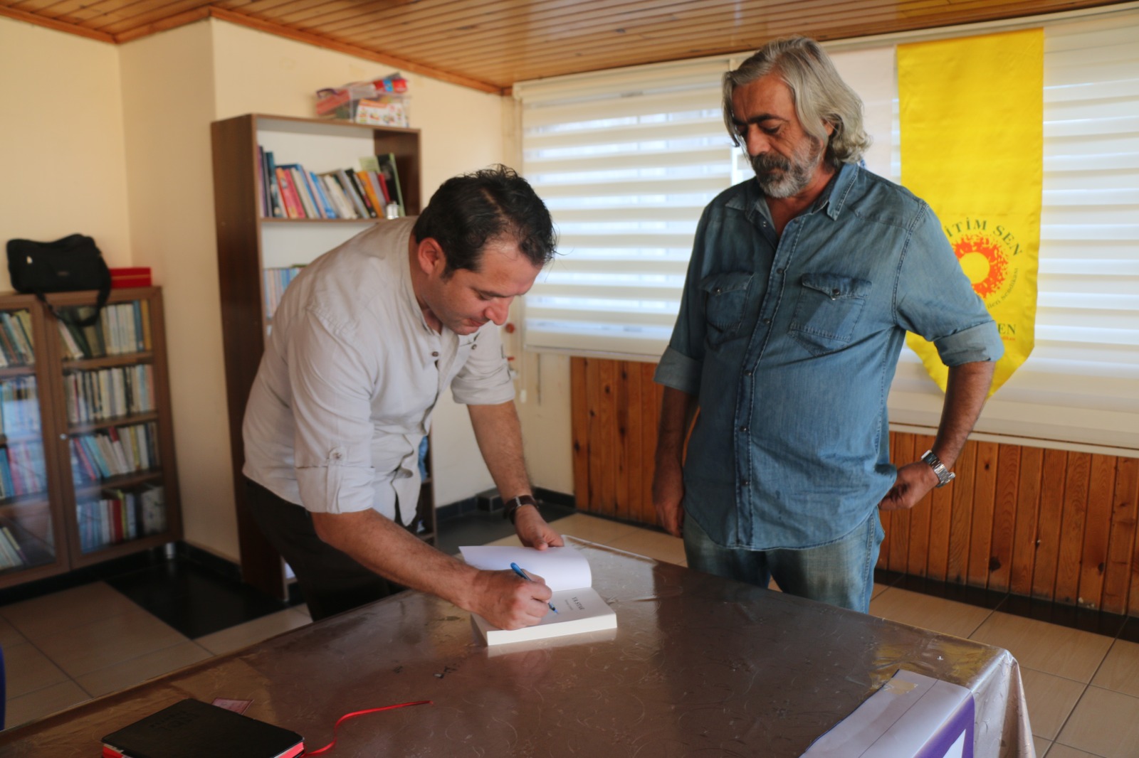 Mersin Eğitim-Sen Kadın Sekreteri Gülperi Fatih de Demir’e sendikaya verdiği destekten ötürü plaket verdi. Daha sonra Demir okuyucularına kitabı imzaladı.