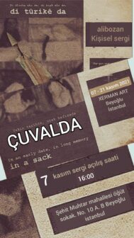 ‘Çuval’ temalı çalışması ile Roboski, Sur, Cizre gibi katliamlara işaret eden Ali Bozan, ülke tarihinin birçok acı ölümlerini de tekrar anımsatıyor. Bozan’ın 7 Kasım’da kapılarını açacağı kişisel sergisi saat 16:00’da Şehit Muhtar Mahallesi, Öğüt Sokak, numara 10 A. B Beyoğlu İstanbul adresinde görülebilecek.