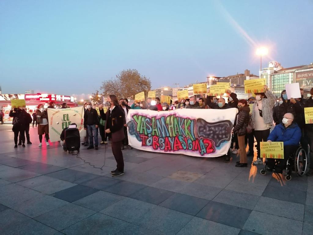 Doğa talanına izin vermeyeceklerini kaydeden Akyürek, yaşam hakkının torbaya sığmayacağını ifade ederek, “Bugün ülkenin pek çok yerinde halk sokaktadır, ‘rant ve sermayenin çıkarları uğruna doğayı tahrip edemezsiniz’ çığlıkları her yerden yükseliyor. Biz yaşamı savunanlar işçiler, emekçiler, kadınlar, gençler, kentliler ve köylüler ‘yeter artık’ diyoruz. Bu talanı durdurmaya kararlıyız, Torba Yasa’yı geri çekin. Yaşam alanlarımızın yok edilmesine izin vermeyeceğiz” dedi.