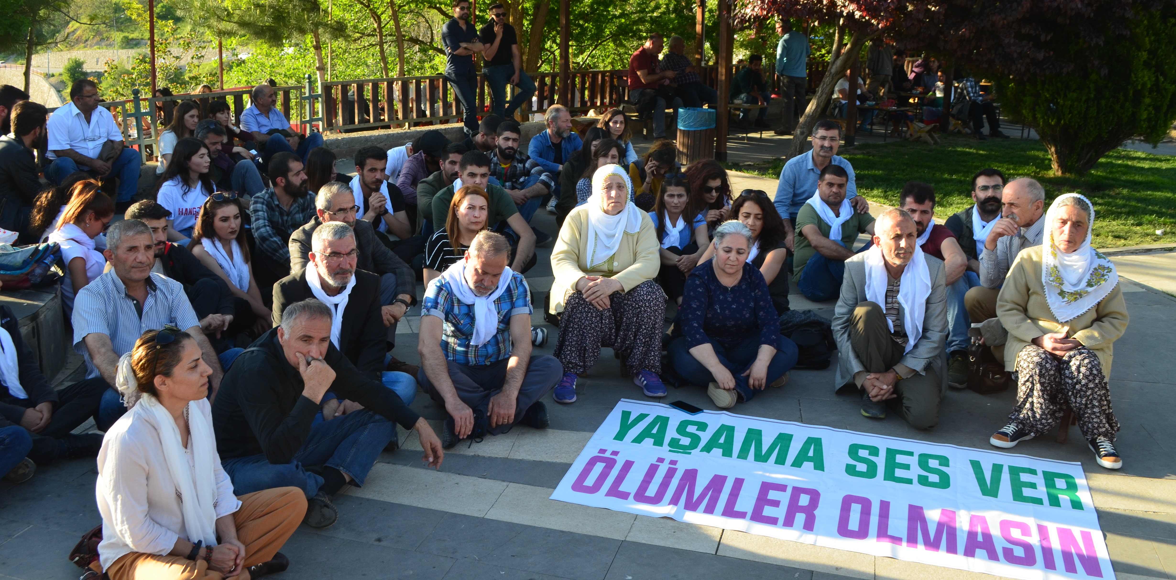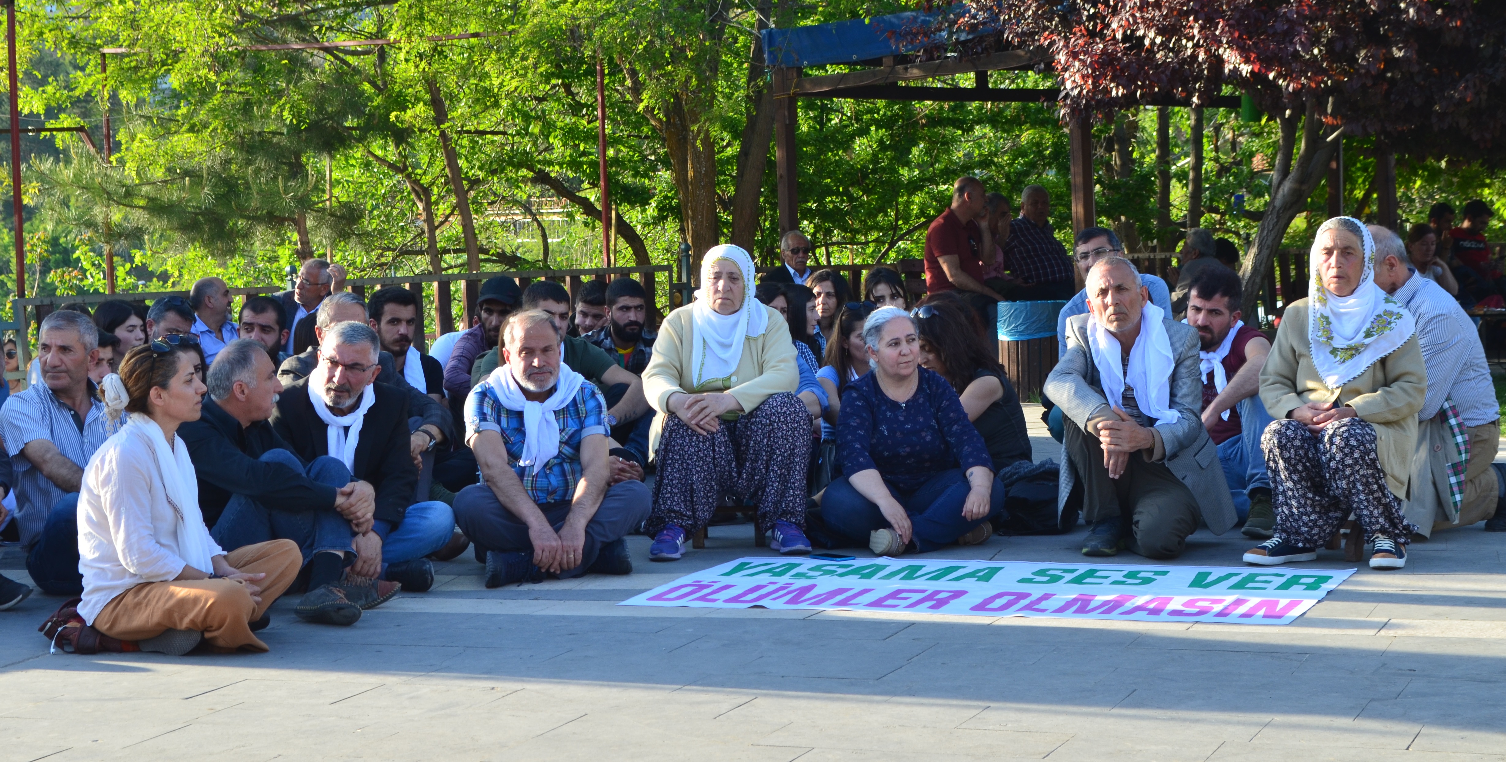 Seyit Rıza Meydanı’nda gerçekleşen oturma eylemine siyasi parti ve kurum temsilcileri, il eş başkanları, çocukları açlık grevinde olan anneler ile yurttaşlar katıldı.