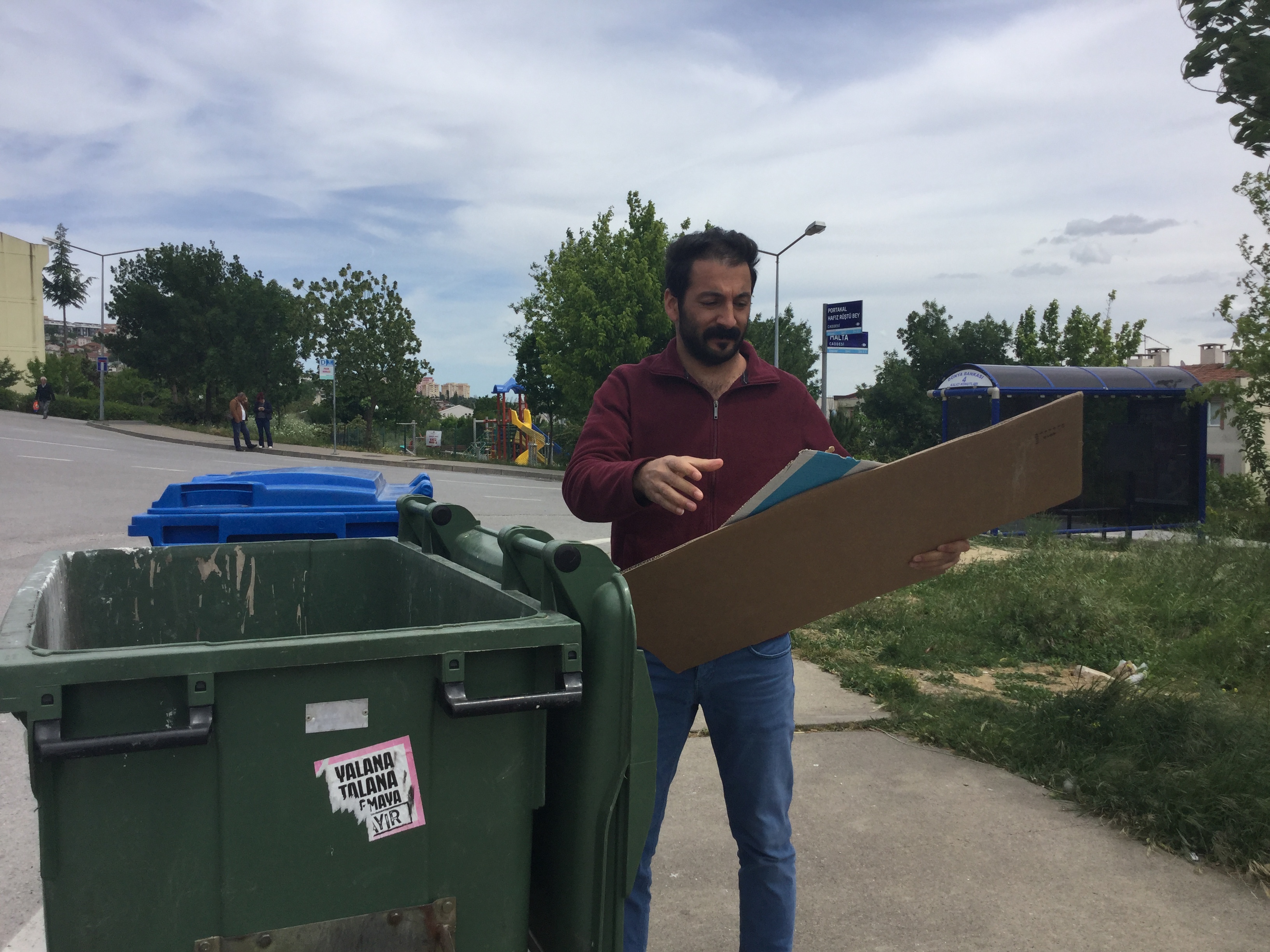 Kocaeli Üniversitesi İletişim Fakültesi Öğrencisi Ersin Dargın, resim malzemeleri bir öğrenci bütçesine göre çok pahalı olduğu için, resmi çizdiği kartonları çöpten topluyor.