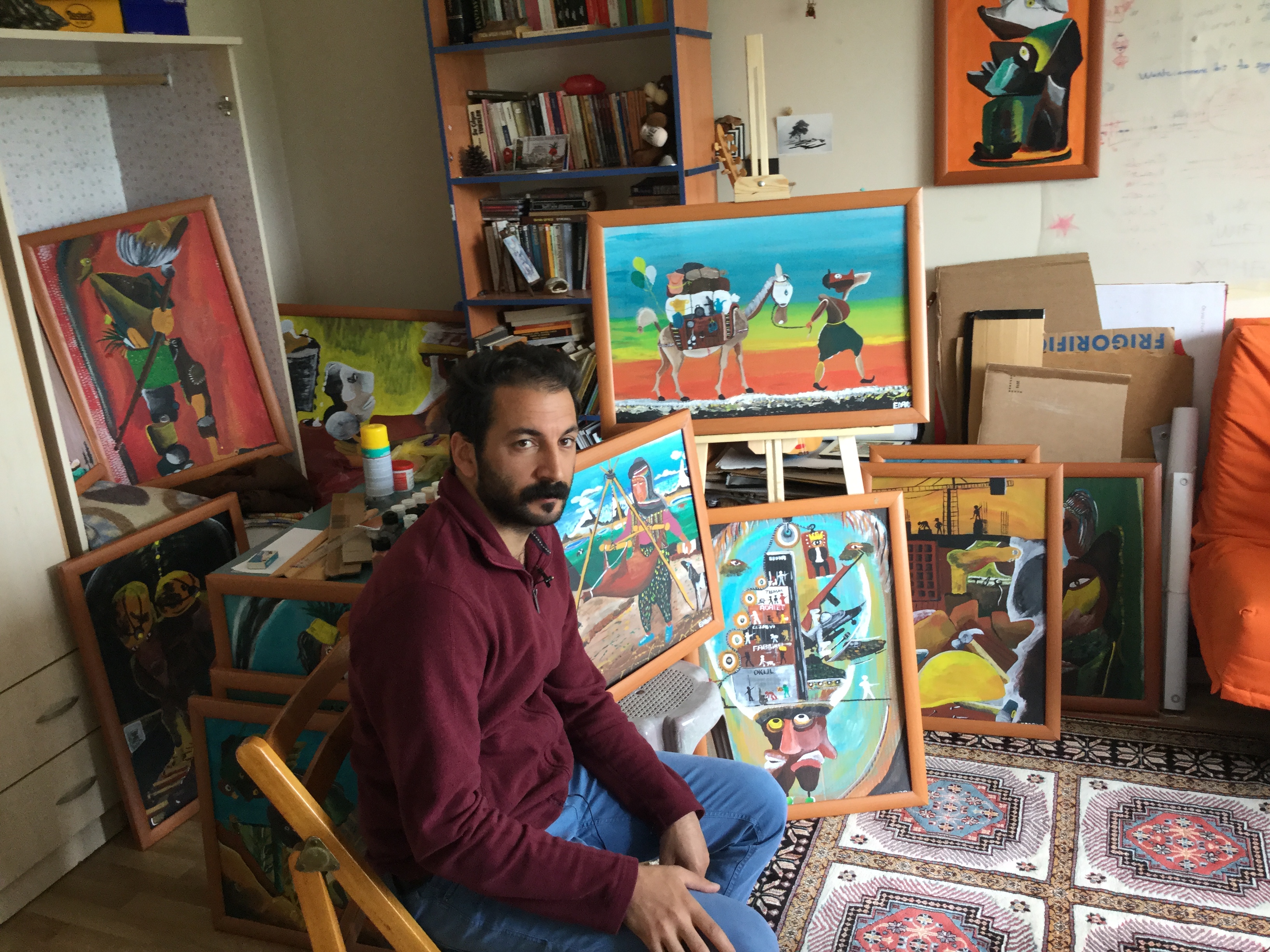 PİRHA- Kocaeli Üniversitesi İletişim Fakültesi Öğrencisi Dersimli Ersin Dargın ile yaptığı resimlere yönelik kısa bir sohbet gerçekleştirdik. Üniversitedeki eğitimini inşaatlarda çalışarak sürdüren Dargın, malzemeleri pahalı olduğu için çöpten topladığı kartonlarla resim yapıyor. Yaptığı resimlerde daha çok toplumsal sorunlara ve kaybolan kültürel değerlere yer veren Dargın, “Yaşanan haksızlıklara, hukuksuzluklara ve adaletsizliklere vicdanım el vermediği için bunu resim yaparak yansıtmak istedim” dedi.