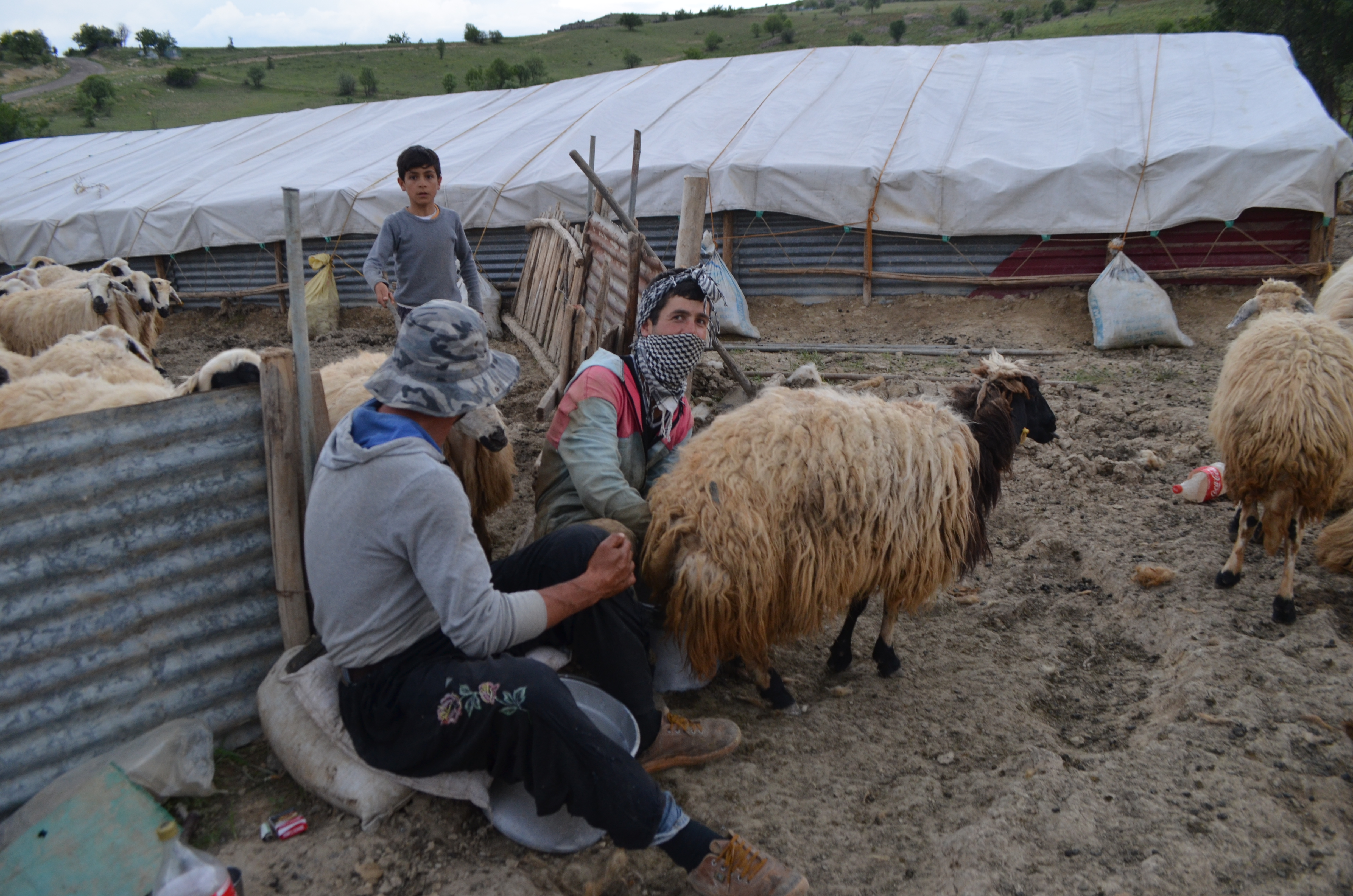 Kışın çadırlarımız kar yağınca çöktü. Devletten de destek alamadık. Geldi burada bakıp fotoğraflarını da çektiler, devletten hiçbir destek alamadık. Benim kimsem yok, ekip biçeceğim toprağım da yoktur. Ben bu koyunla uğraşıyorum. Sadece benle eşim; o yüzden çoban almak zorundayız. Kazandığımız da fazla bir şey değil. Bu meslekte kalabalık çok önemli. Kalabalık olduğun zaman kazancın olur. Yaylalarda engel çıkmazsa kiraladığımız yerlere gideriz.”