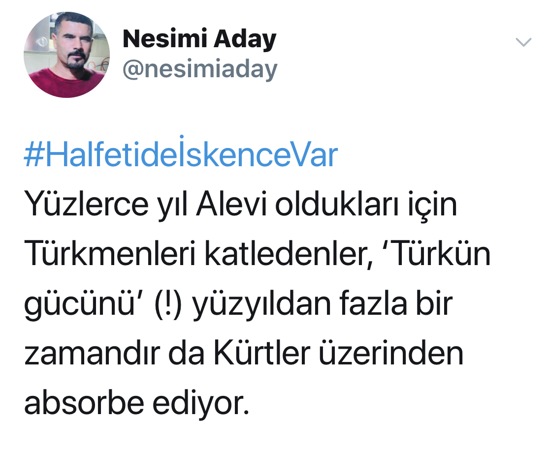 Yazar Aday’ın “Bu fotoğraf ne vatandaşlık hukukuyla, ne İslam adaletiyle ne de kardeşlik bağıyla tarif edilir; bu sömürge hukukudur” ve “Yüzlerce yıldır Alevi oldukları için Türkmenleri katledenler, ‘Türkün gücünü’ (!) yüzyıldan fazla bir zamandır da Kürtler üzerinden absorbe ediyor” şeklindeki eleştirel yorumları soruşturma dosyasına konuldu.