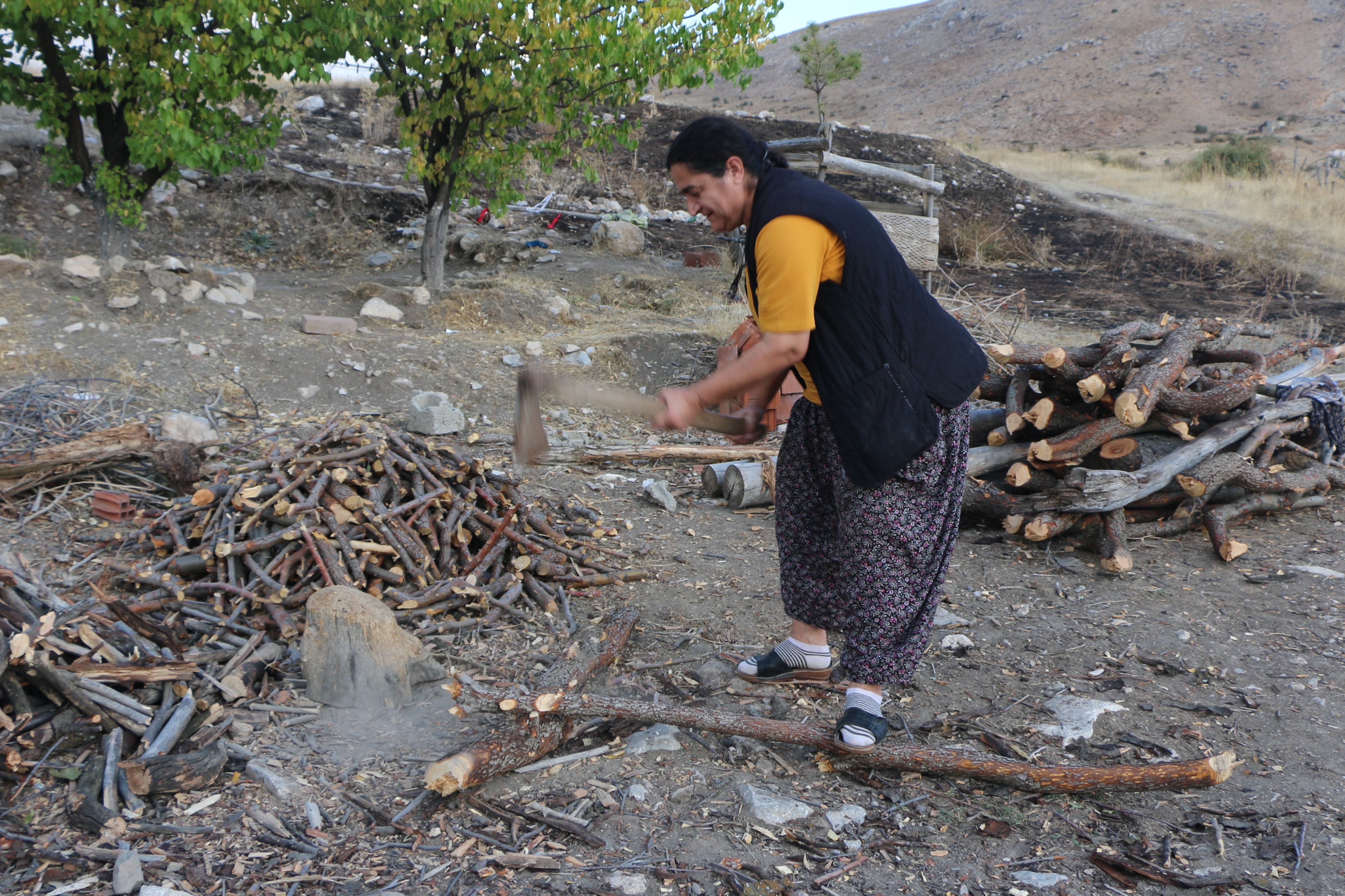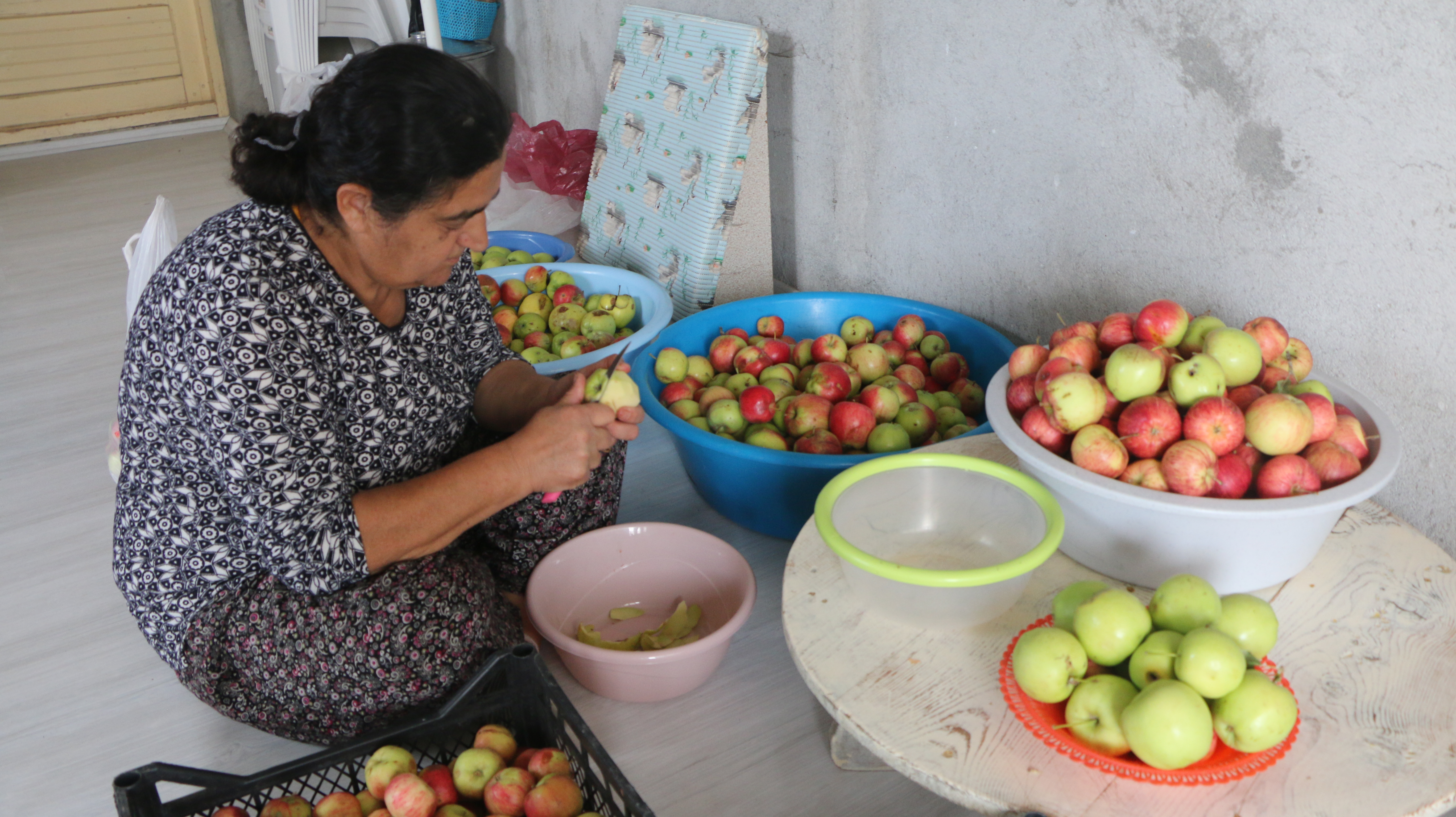 Zorlukları olsa da köyde yapılan her işin mutluluk verdiğini aktaran Sezgin, “Kuşburnu (Şilan), topluyorum. Marmelatını yapacağım. Kışa hazırlık yapıyorum. Elma kurutuyorum kışın komposto yapmak için. Kaç gündür topluyorum zevkli oluyor. Zaman güzel geçiyor. Kadınlarla beraber şilan toplamaya geliyoruz. Birlikte toplayıp birlikte yapıyoruz. Elma toplayıp pestil yapıyoruz. Bu yıl kış için iyi hazırlık yaptık” diye belirtiyor.