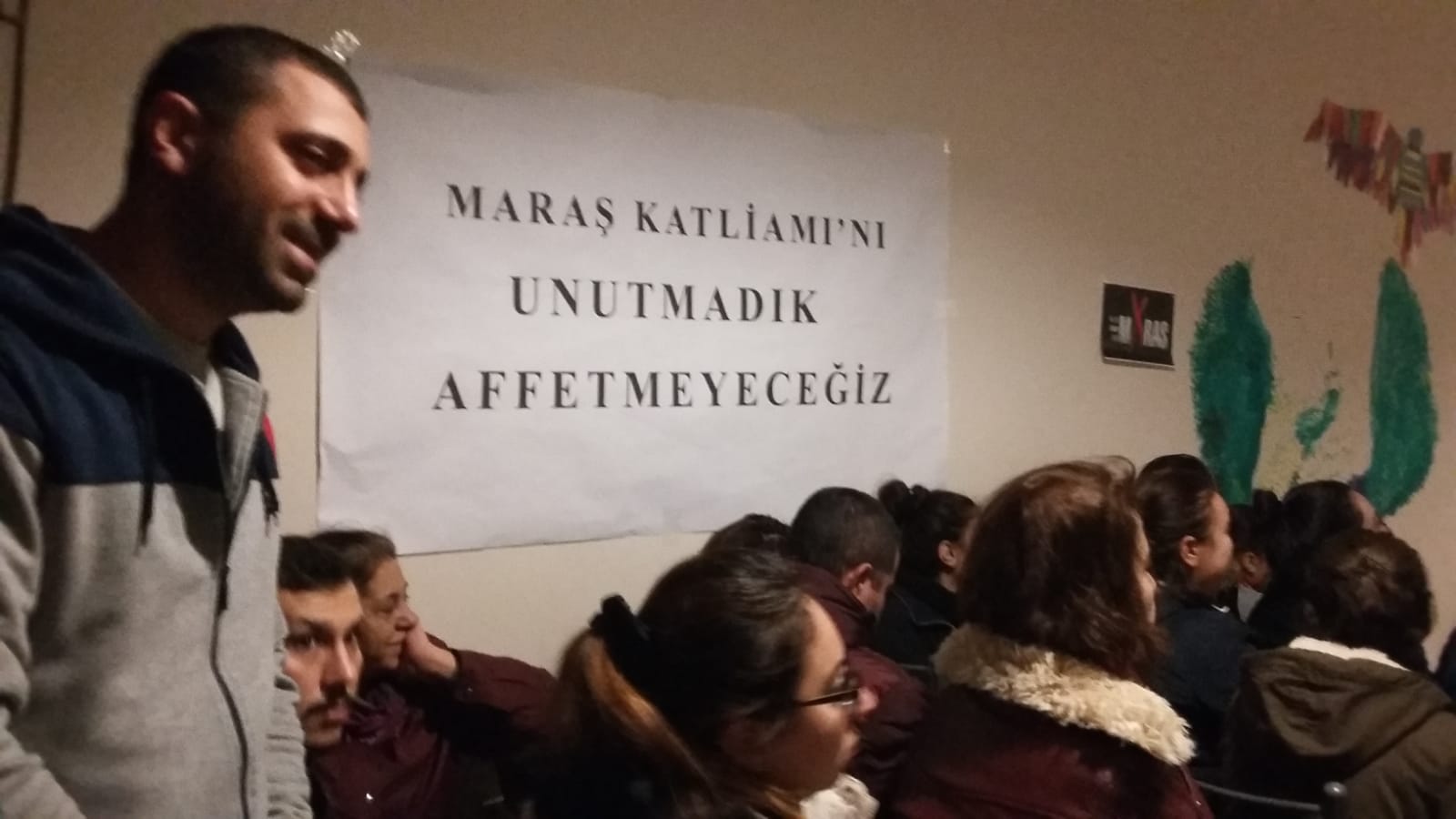 Tiyatrodan sonra Maraş Katliamı’na ilişkin belgesel gösterimi yapıldı. Daha sonra muhabbetle anma son buldu.