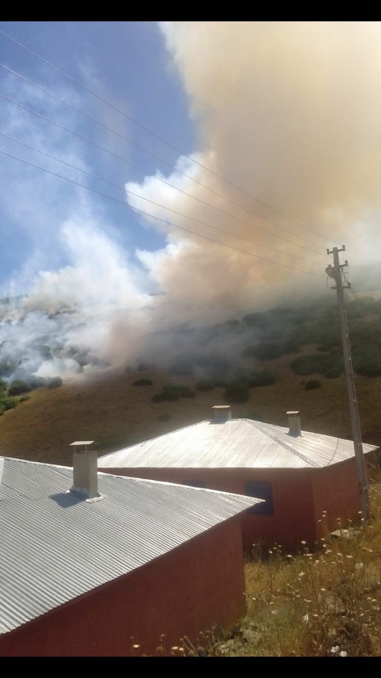 PİRHA-Erzurum Hınıs ilçesine bağlı Alevi köyü Kazancı’da elektrik direğinin patlaması sonucu çıkan yangın ormanlık alana yayıldı. Köyün yolunun olmaması nedeniyle yangına müdahale edilemiyor.