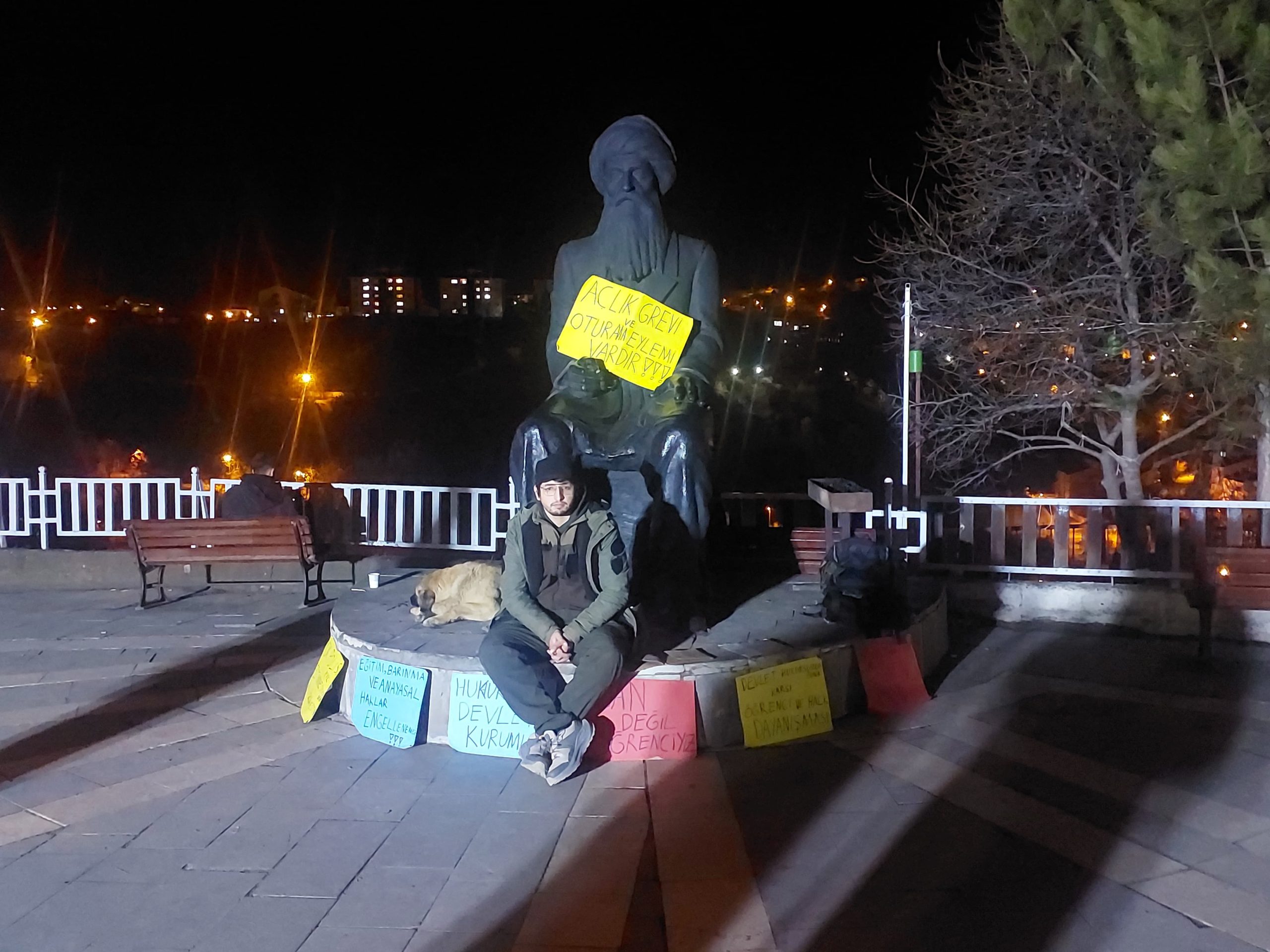 -Yurttan uzaklaştırılan üniversite öğrencisi, oturma eylemi ve açlık grevine başladı-VİDEO
