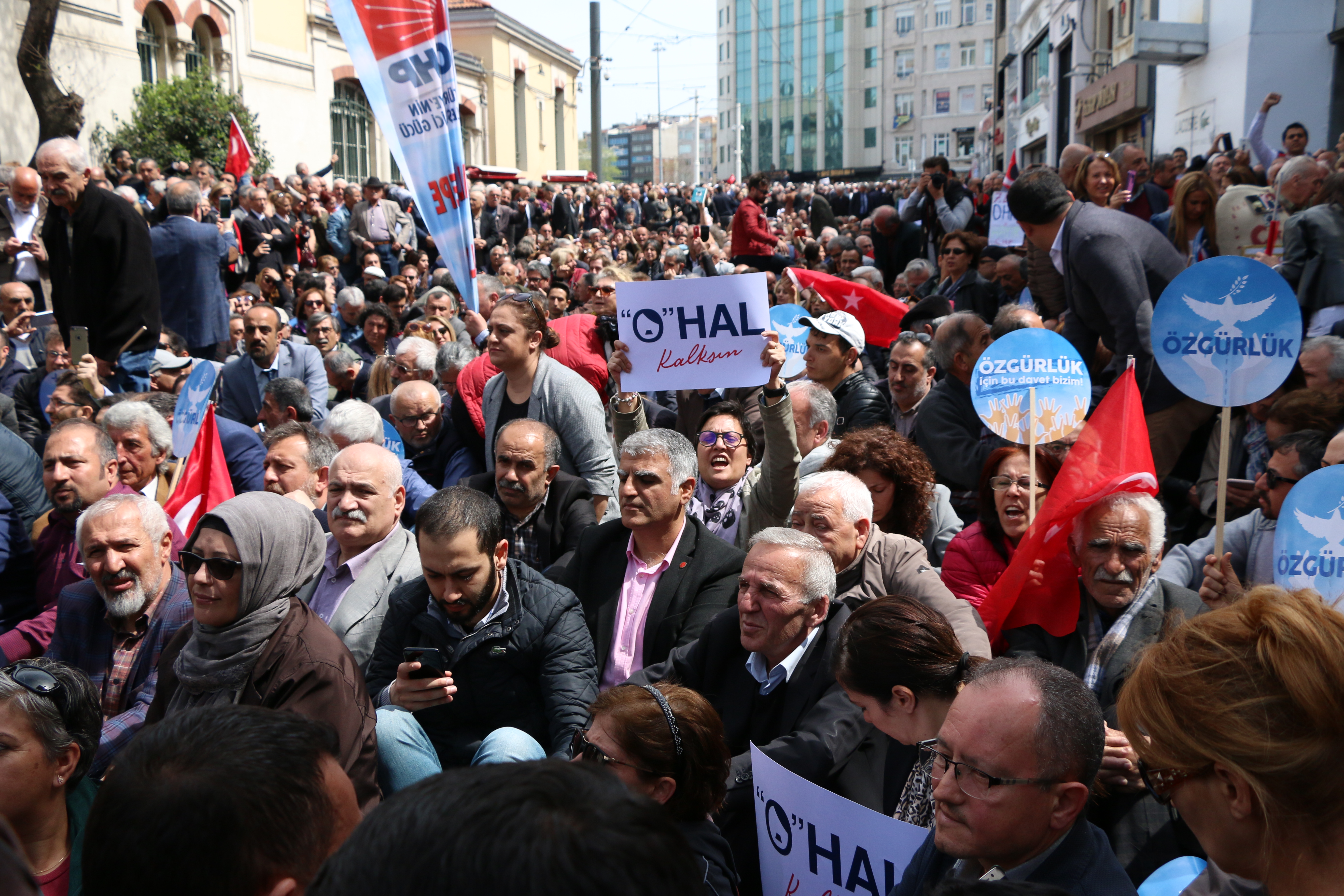CHP, 7. kez uzatılan OHAL’e karşı sokağa çıktı. İstanbul’da Taksim Meydanı’nda toplanan yurttaşlar da “OHAL değil demokrasi” istiyoruz diyerek CHP’nin eylemine destek verdi.