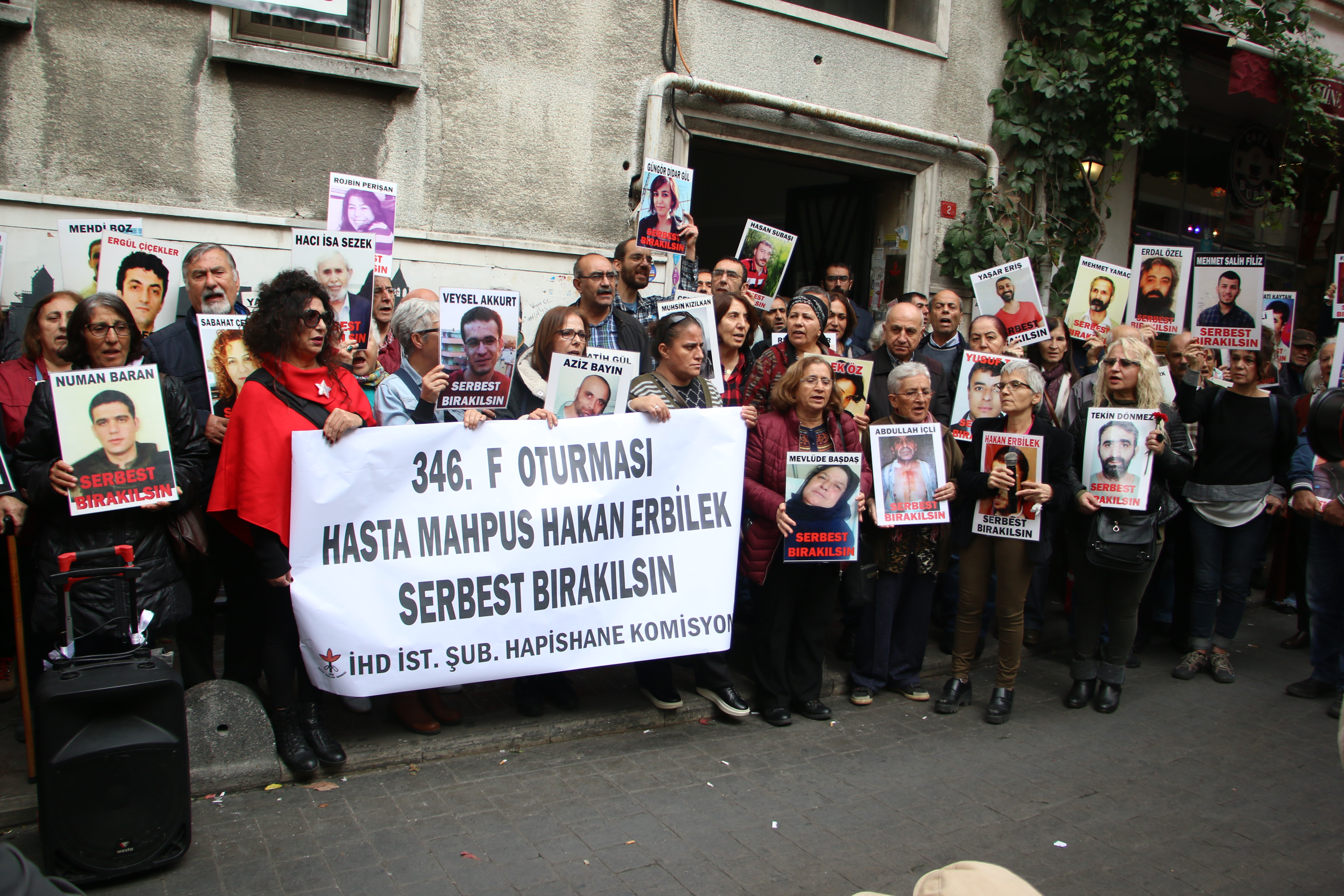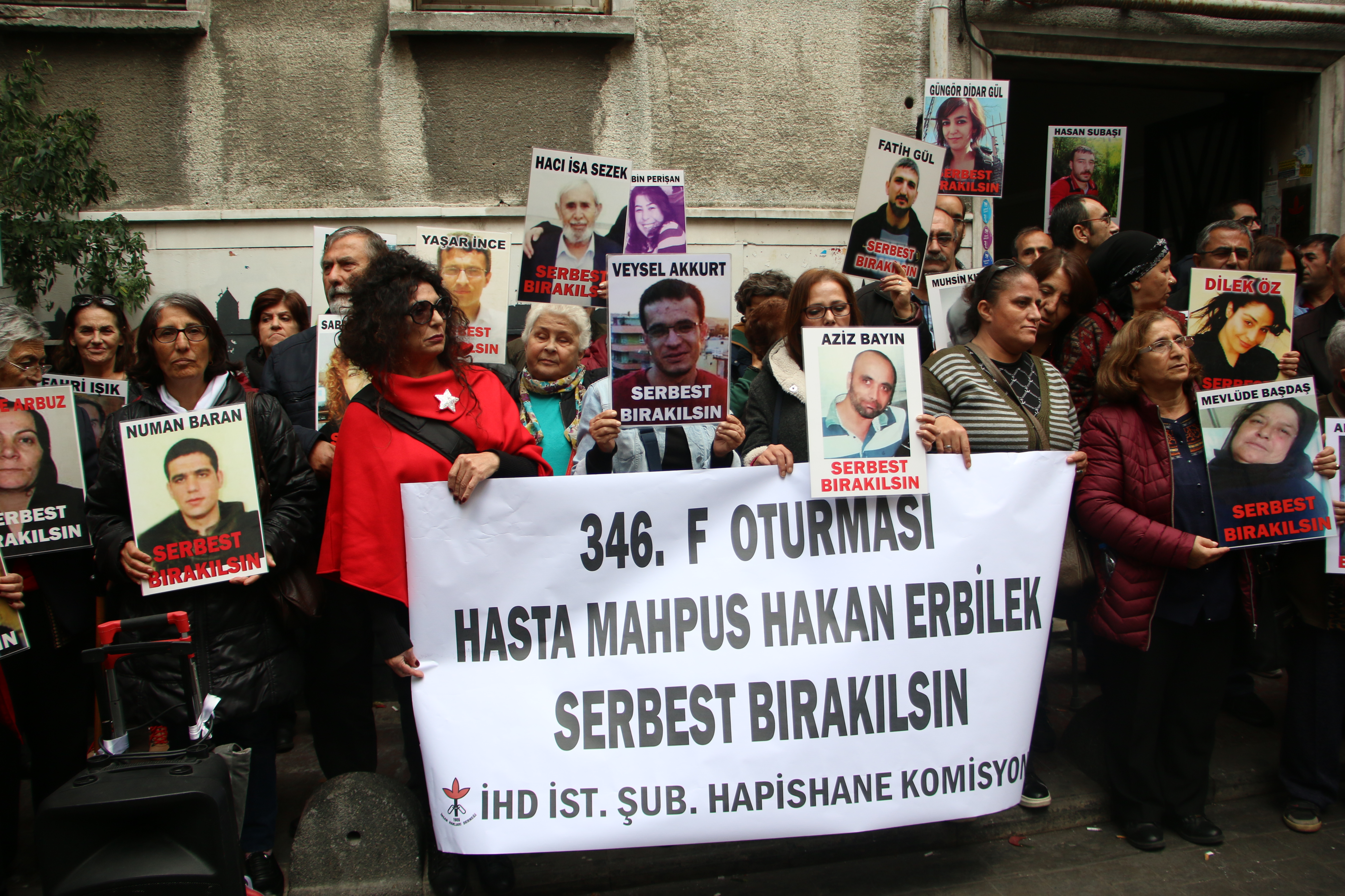 İnsan Hakları Derneği (İHD) İstanbul Şubesi Hapishane Komisyonu tarafından hasta mahpusların serbest bırakılması talebiyle Galatasaray Meydanı’nda yapılmak istenen F Oturumu’nun 346’ıncısı da polis tarafından engellendi. Polisin engeli üzerine açıklama yine İHD Şube binası önünde yapıldı. İHD’nin penceresine İngilizce ve Türkçe olarak “Hasta mahpuslar serbest bırakılsın” pankartı asılırken, hasta mahpusların fotoğrafları taşındı. Bu hafta 99 engelli raporu olan hasta tutuklu Hakan Erbilek’in durumuna dikkat çekildi.